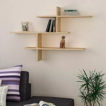 Ραφιέρα τοίχου Leo Megapap μελαμίνης χρώμα φυσικό οξιάς 123x22x80εκ.