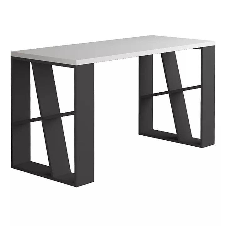 Γραφείο εργασίας Honey Megapap από μελαμίνη χρώμα λευκό - ανθρακί 137x60x75εκ