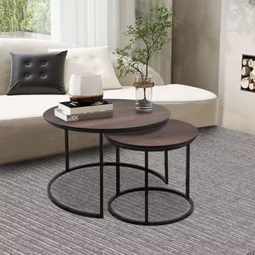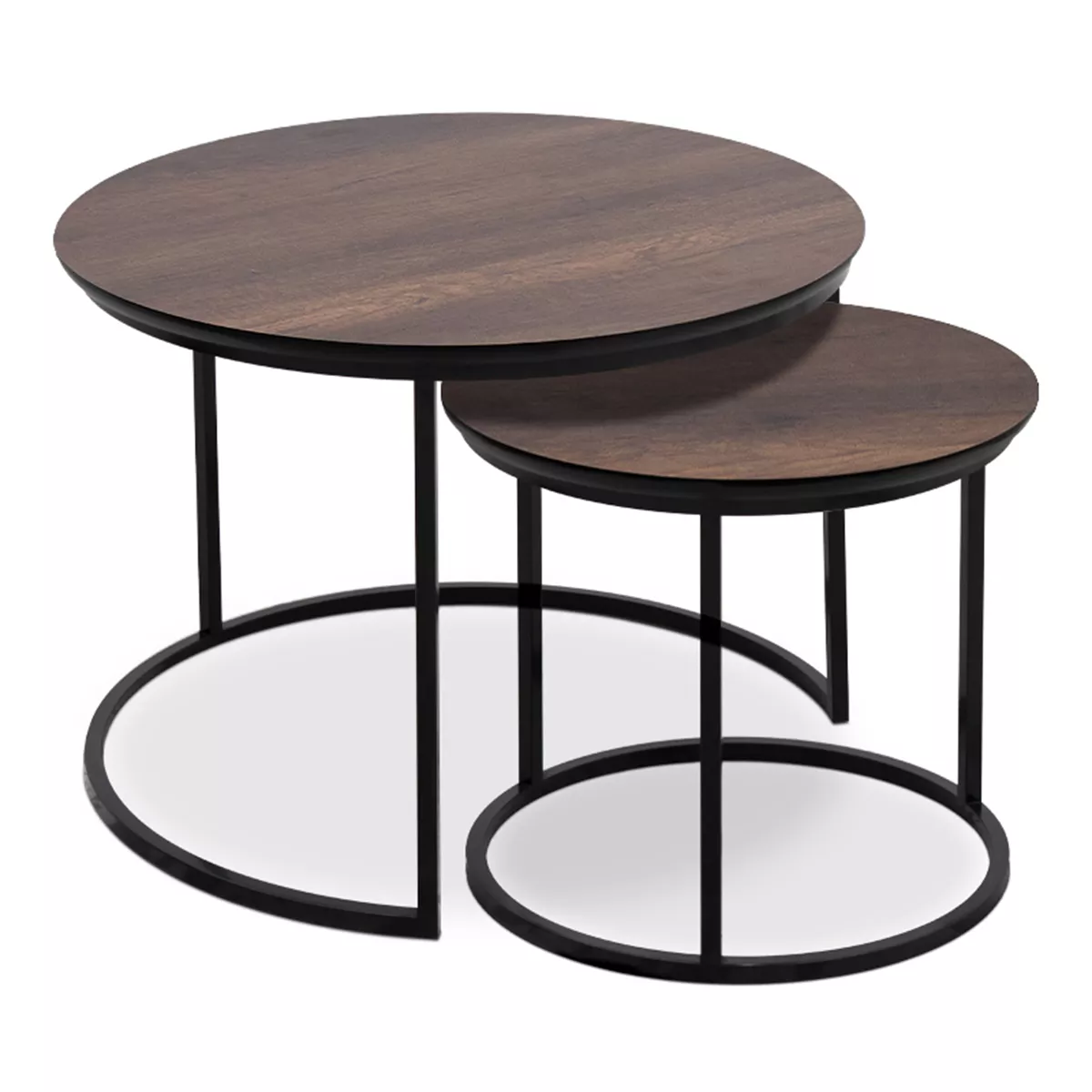 Τραπεζάκια σαλονιού Gary Megapap Mdf - μεταλλικό χρώμα καρυδί 65x65x44εκ.