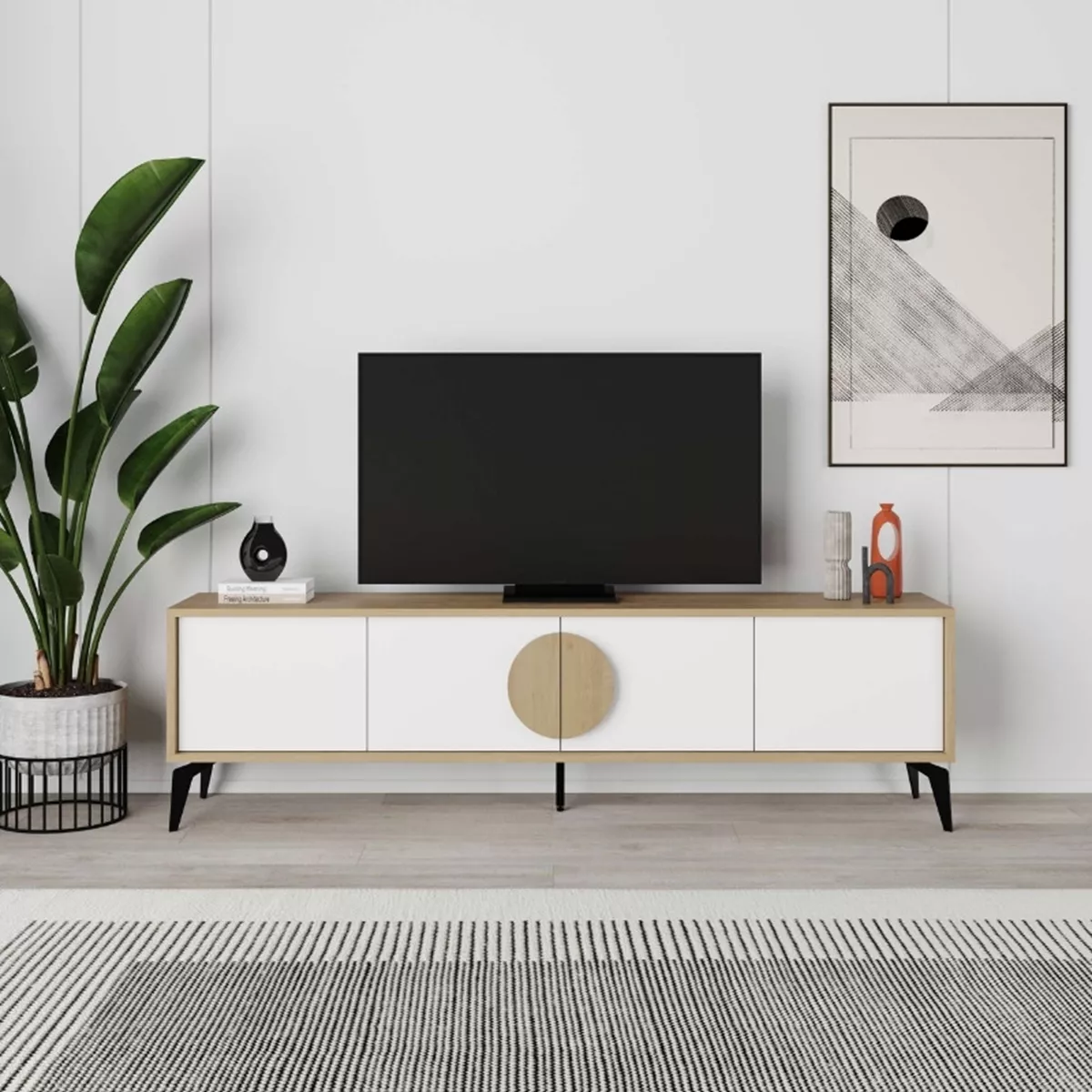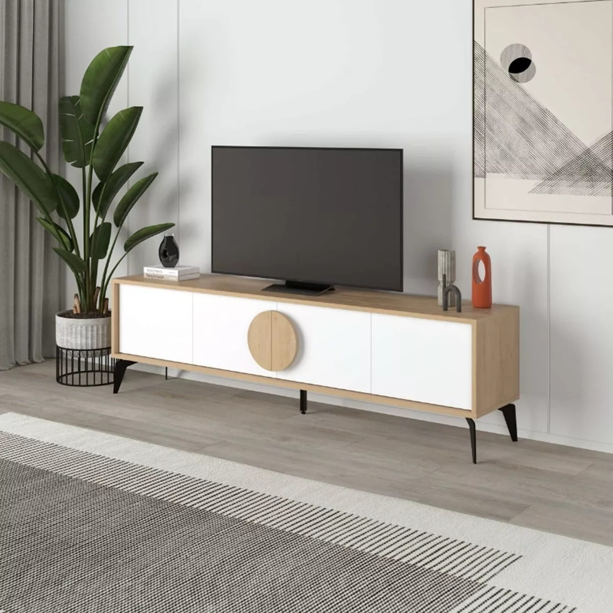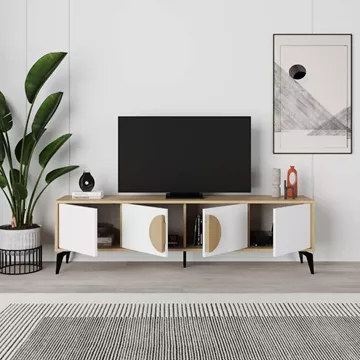 Έπιπλο τηλεόρασης Gora Megapap χρώμα sapphire oak - λευκό 180x35,6x51εκ.
