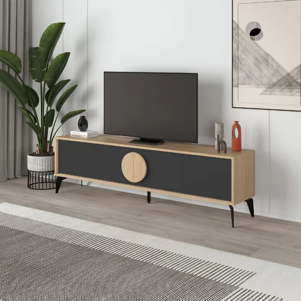 Έπιπλο τηλεόρασης Gora Megapap χρώμα sapphire oak - silky black 180x35,6x51εκ.