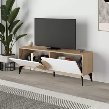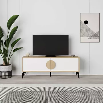 Έπιπλο τηλεόρασης Gora Megapap χρώμα sapphire oak - λευκό 140x35,6x51εκ.