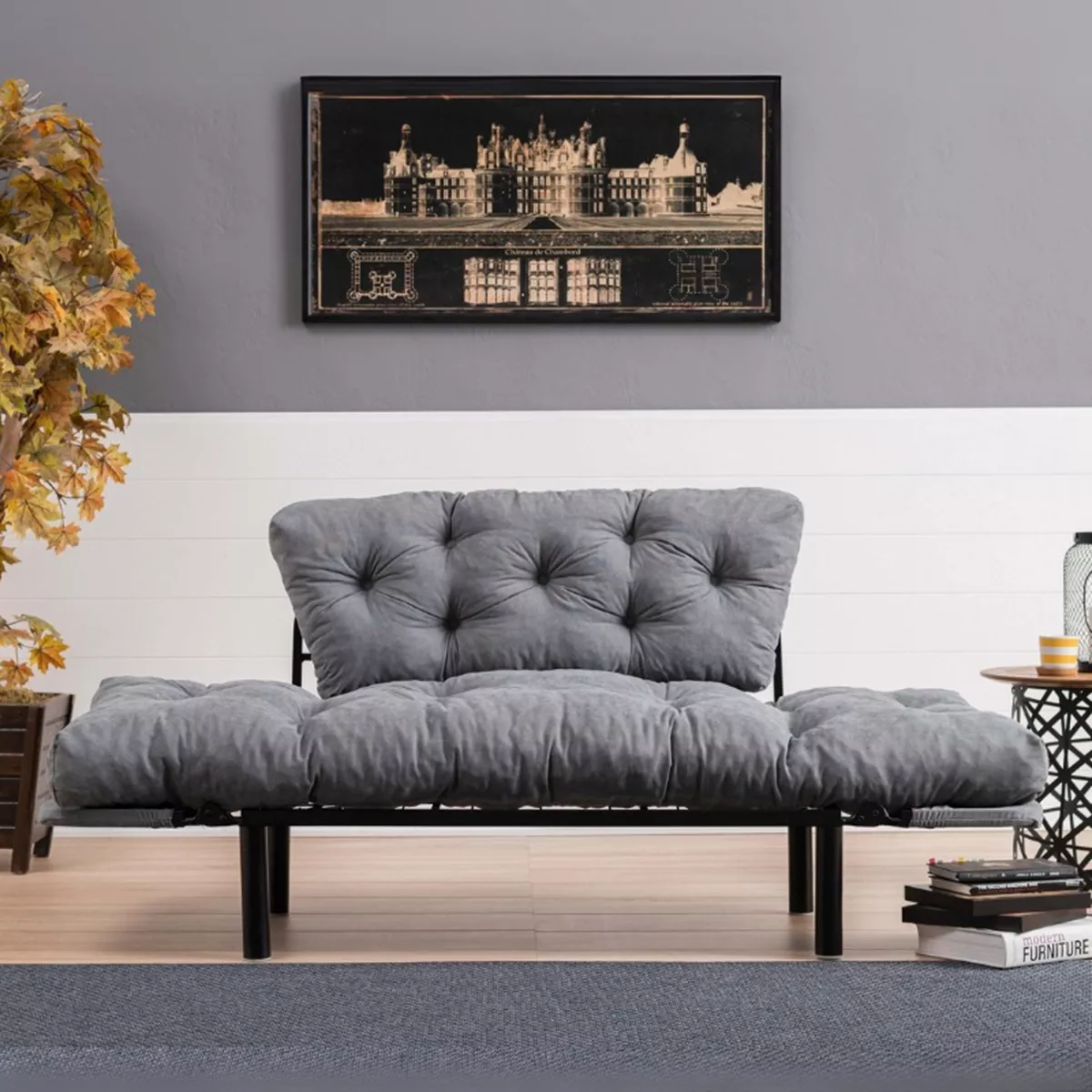 Καναπές - κρεβάτι Nitta Megapap διθέσιος υφασμάτινος χρώμα γκρι 155x70x85εκ.
