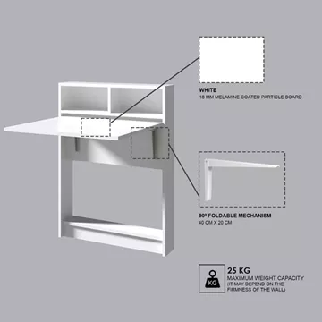Τραπέζι επιτοίχιο πτυσσόμενο Bracke Megapap χρώμα λευκό 70x15x96εκ.
