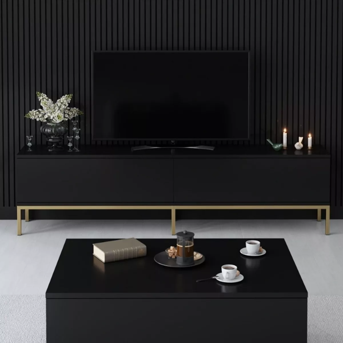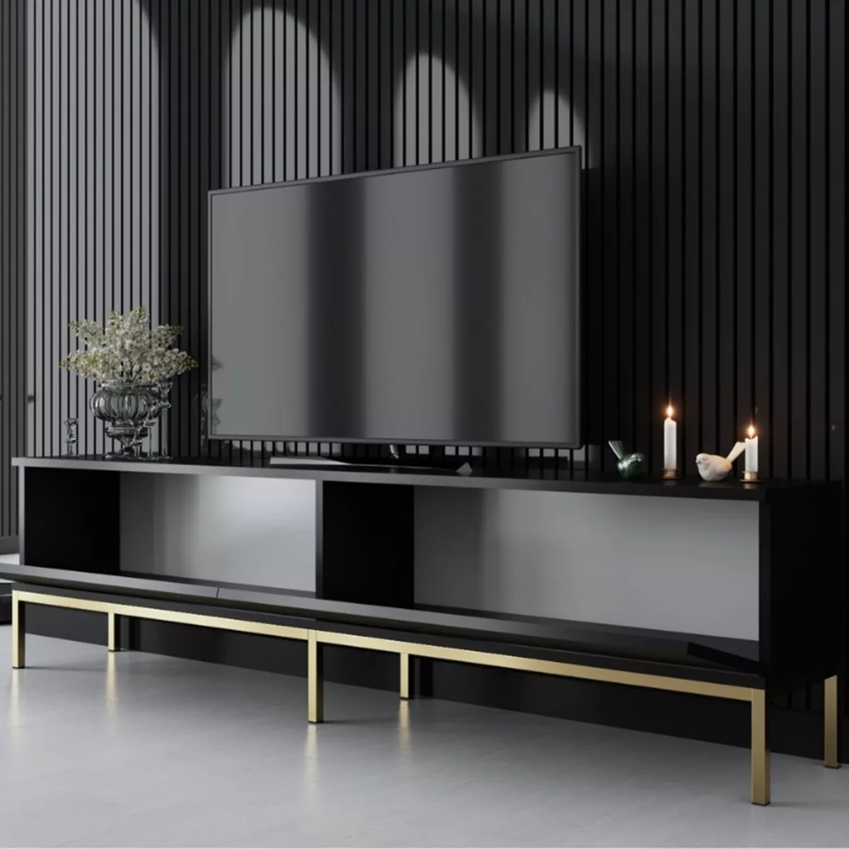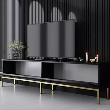 Έπιπλο τηλεόρασης Lord Megapap χρώμα μαύρο - χρυσό 180x30x47εκ.