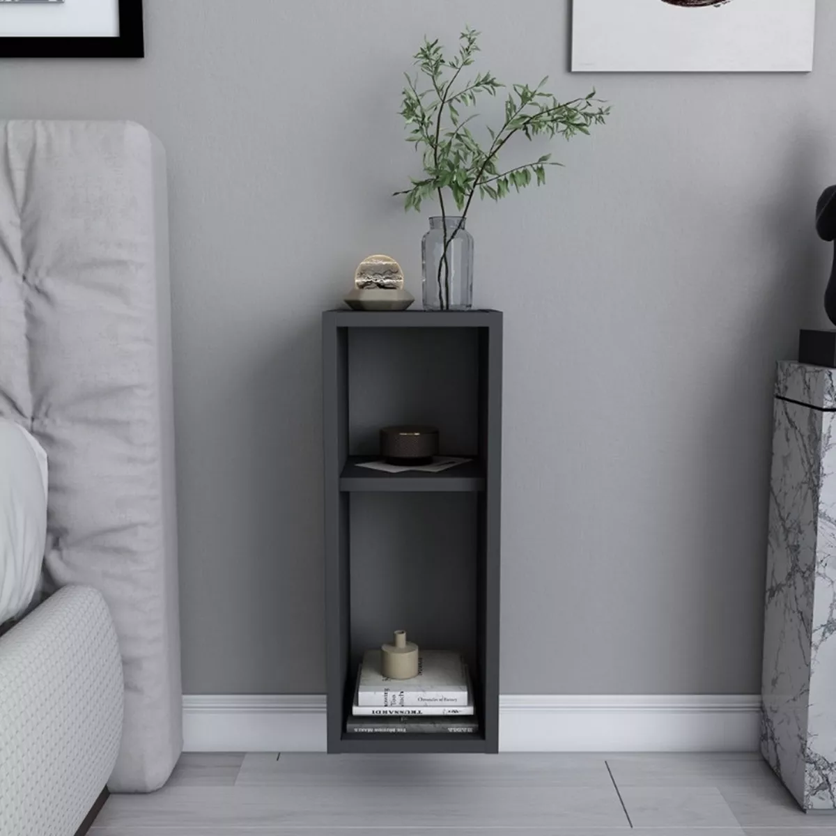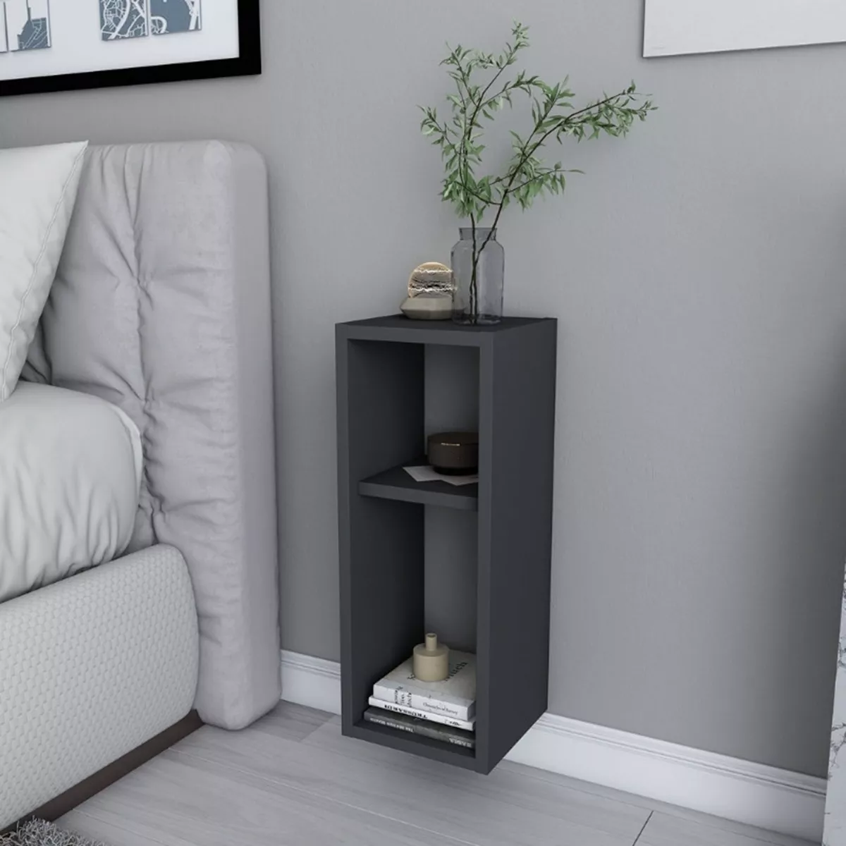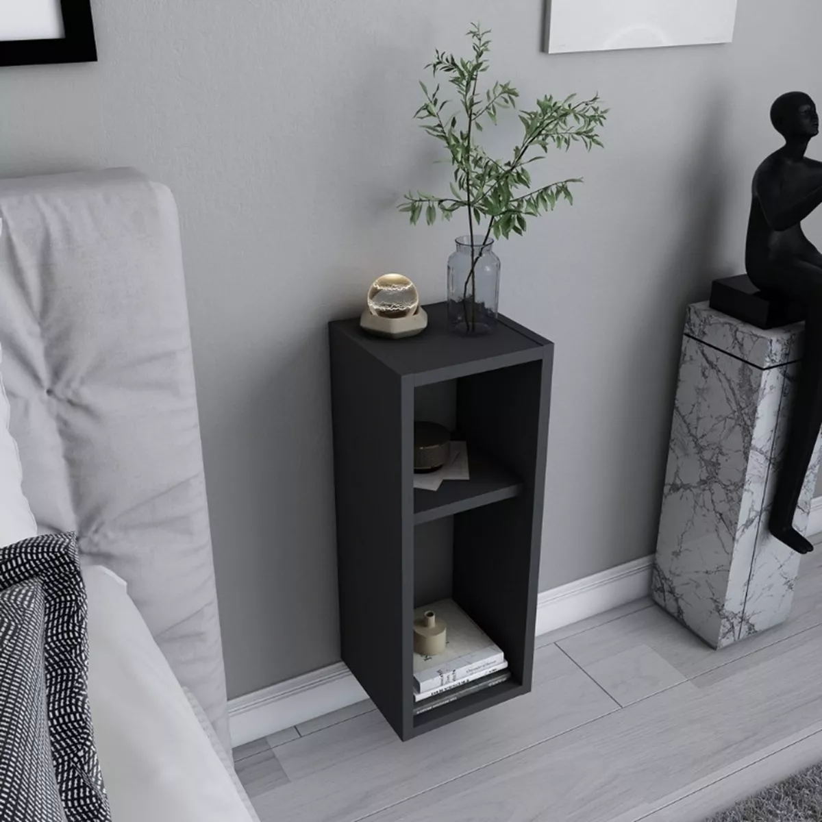 Κομοδίνο επιτοίχιο Sault Megapap χρώμα ανθρακί 23,2x22x59,6εκ.