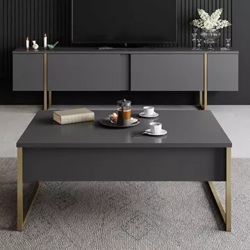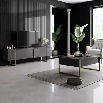 Τραπεζάκι σαλονιού Luxe Megapap χρώμα ανθρακί - χρυσό 90x60x40εκ.