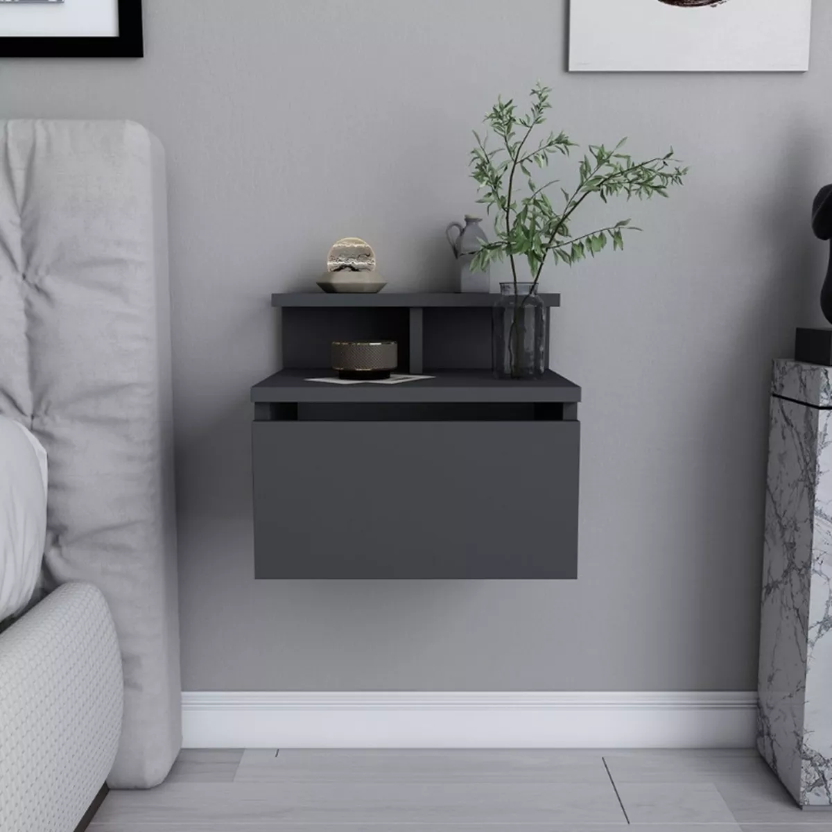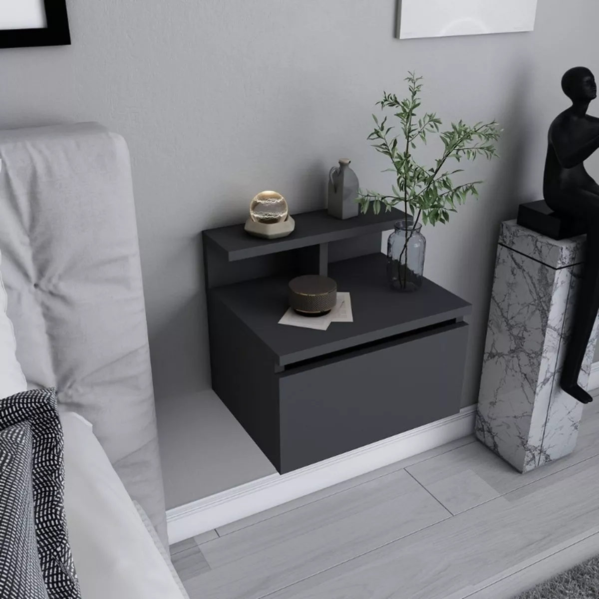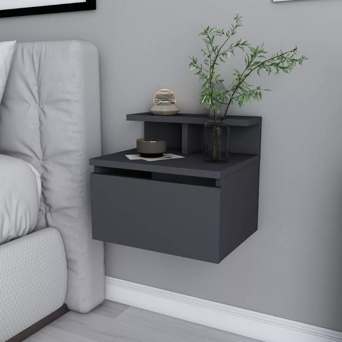 Κομοδίνο επιτοίχιο Arsen Megapap χρώμα ανθρακί 39,8x31,9x35εκ.