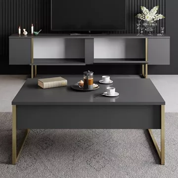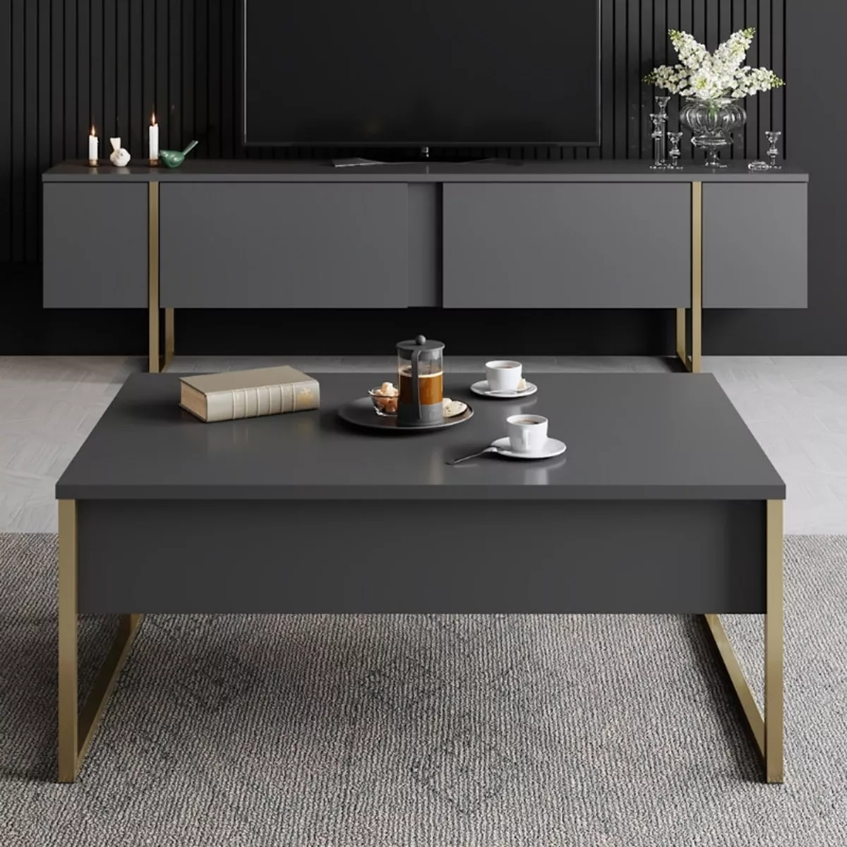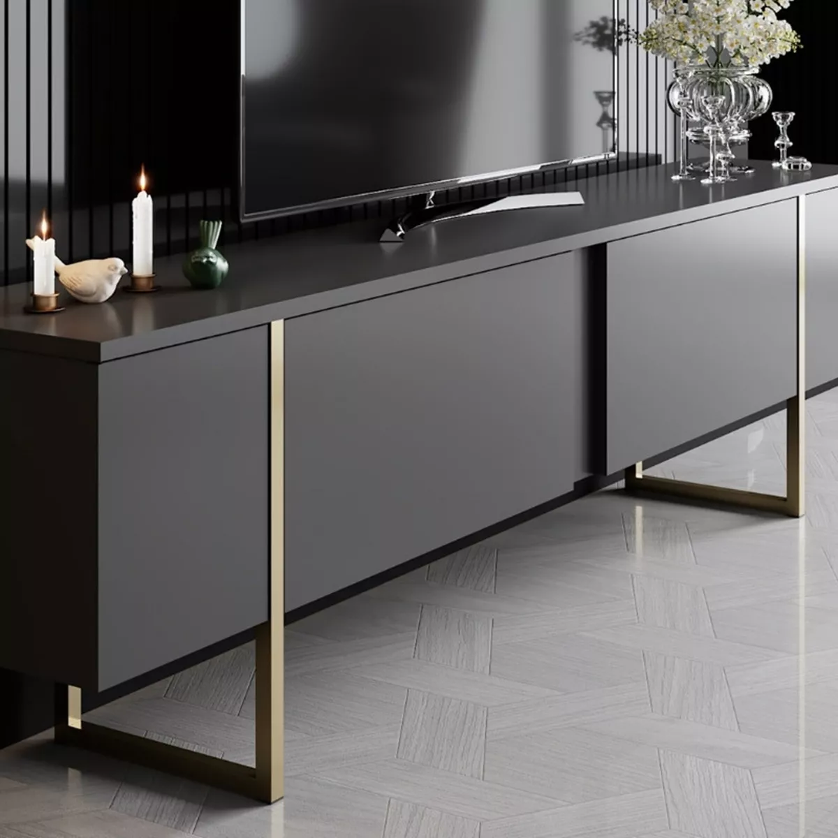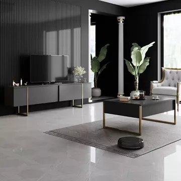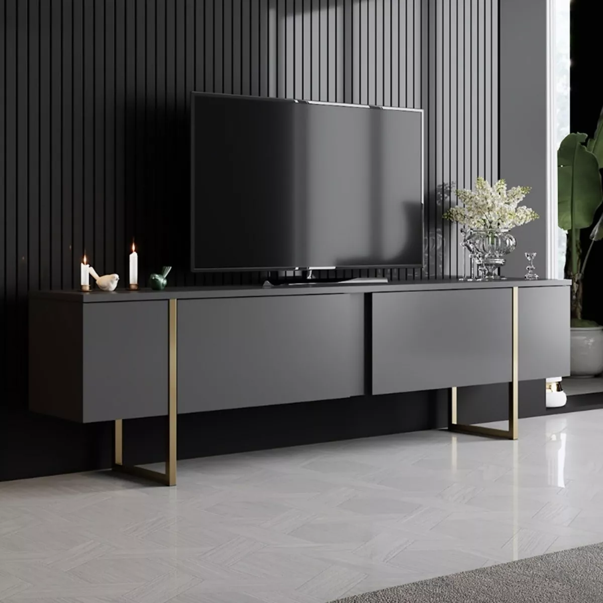 Έπιπλο τηλεόρασης Luxe Megapap χρώμα ανθρακί - χρυσό 180x30x50εκ.