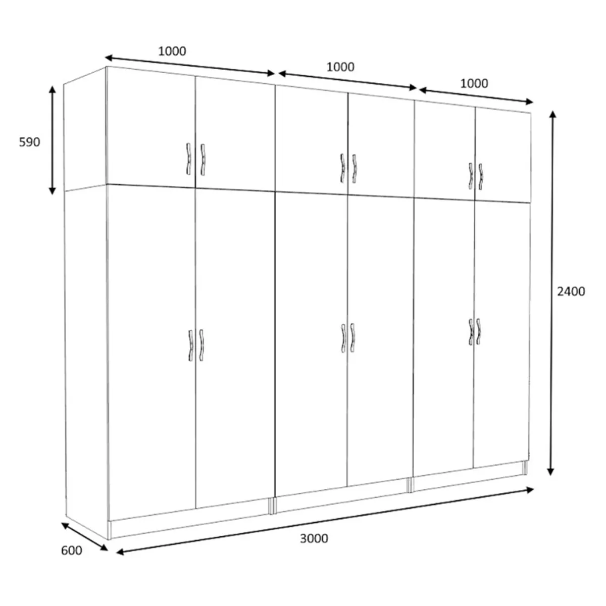 Ντουλάπα ρούχων Victoria Megapap εξάφυλλη με πατάρι χρώμα λευκό 300x60x240εκ.
