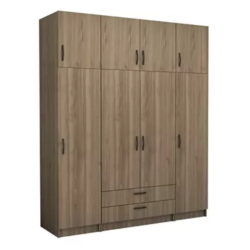 Ντουλάπα ρούχων Victoria Megapap τετράφυλλη με πατάρι και συρτάρια χρώμα καρυδί 200x60x240εκ.