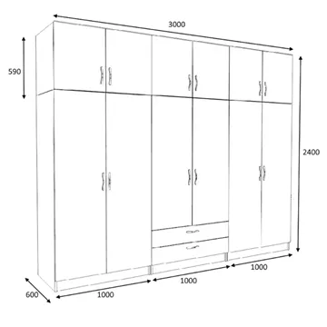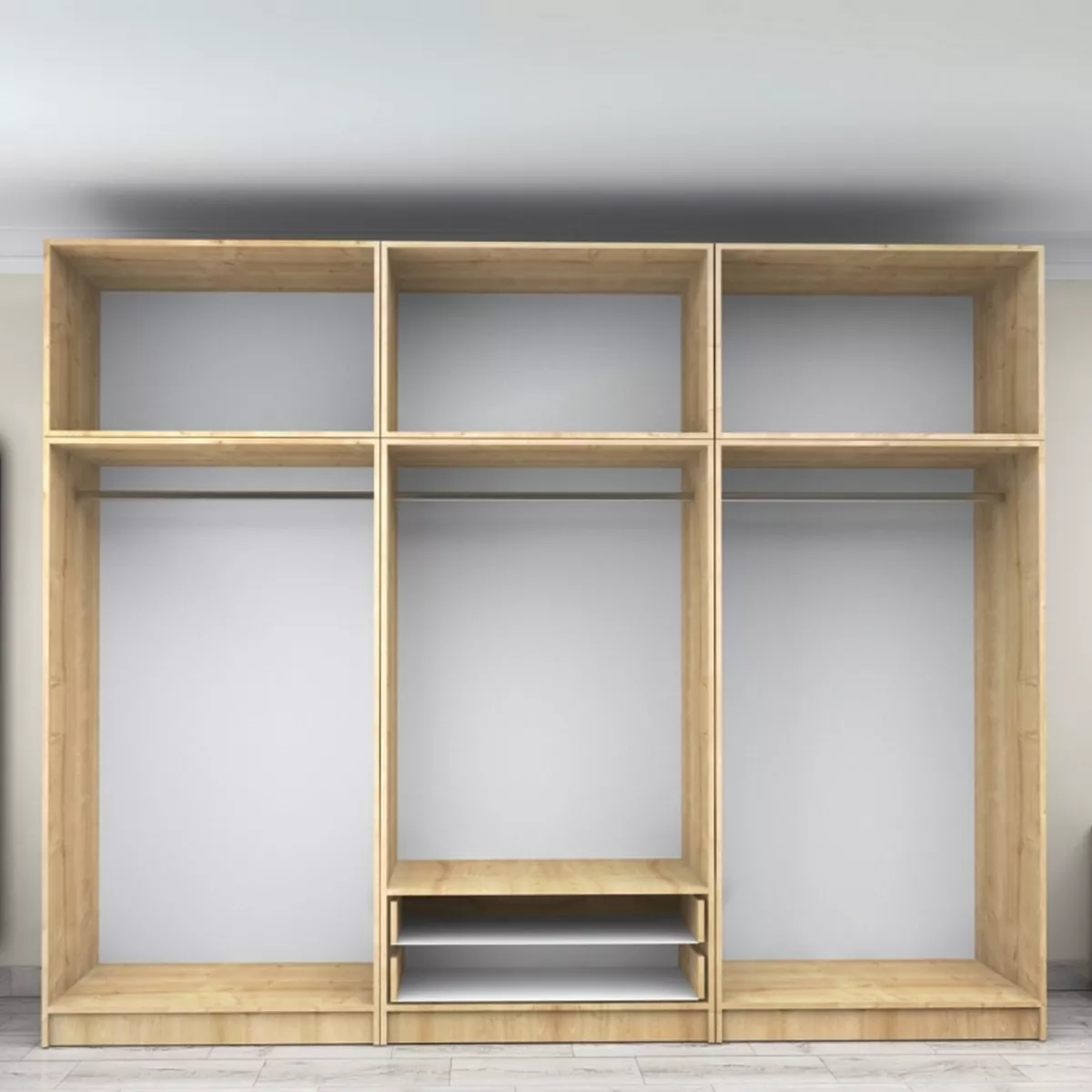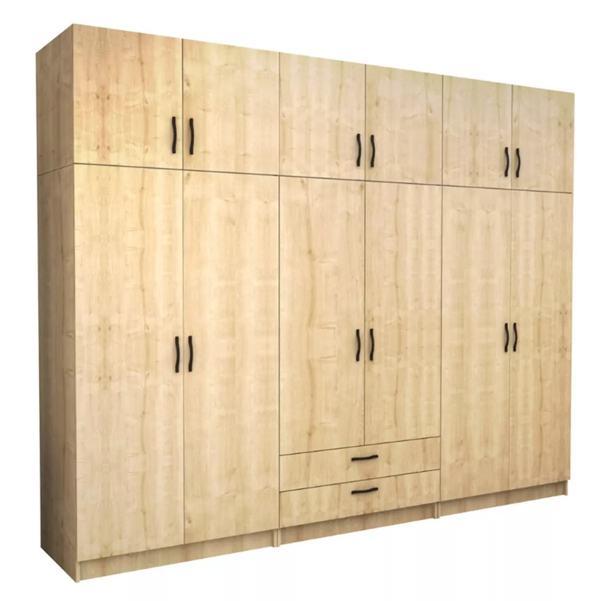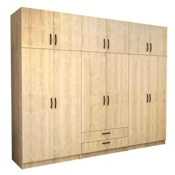 Ντουλάπα ρούχων Victoria Megapap εξάφυλλη με πατάρι και συρτάρια χρώμα φυσικό οξιάς 300x60x240εκ.