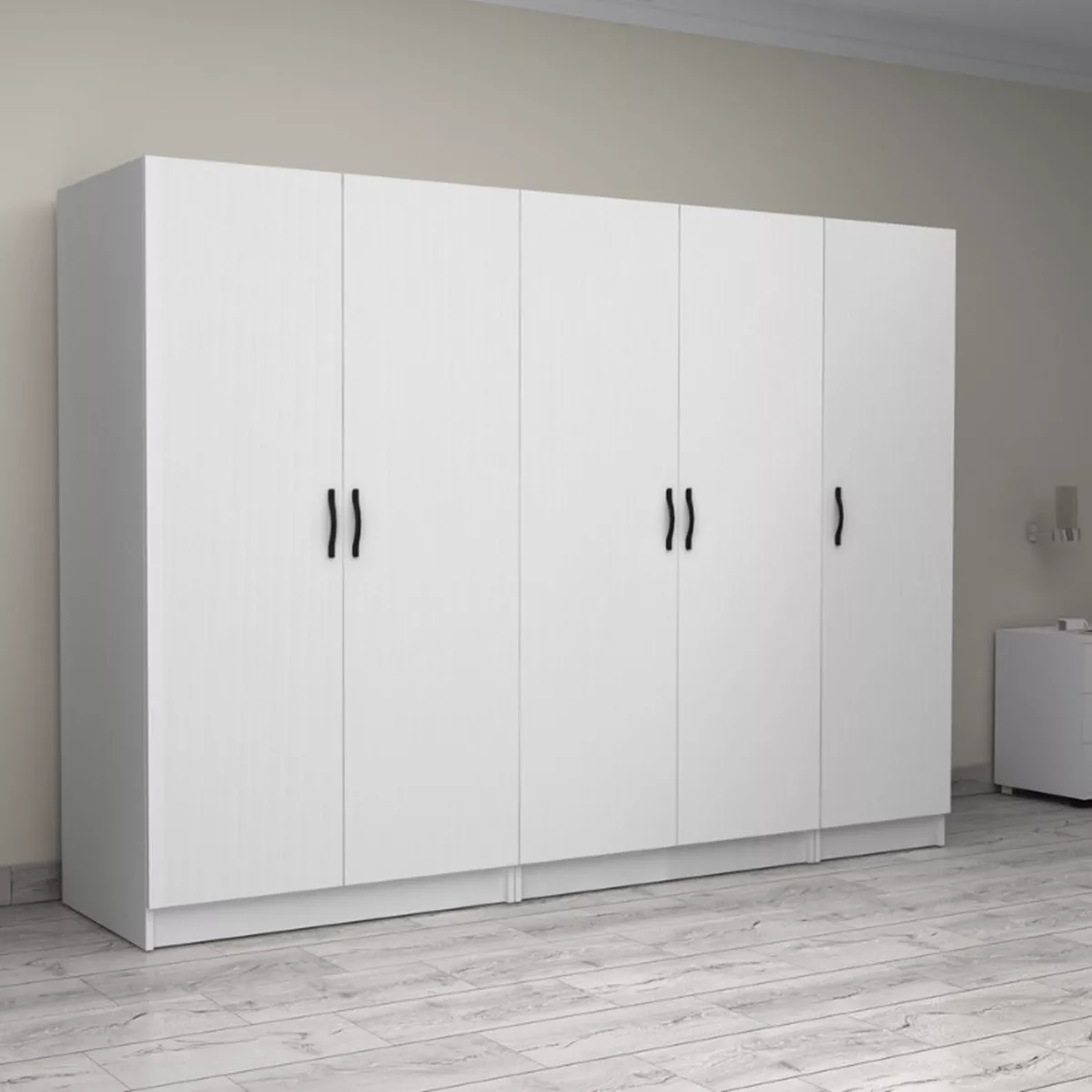 Ντουλάπα ρούχων Victoria Megapap πεντάφυλλη χρώμα λευκό 250x60x181εκ.