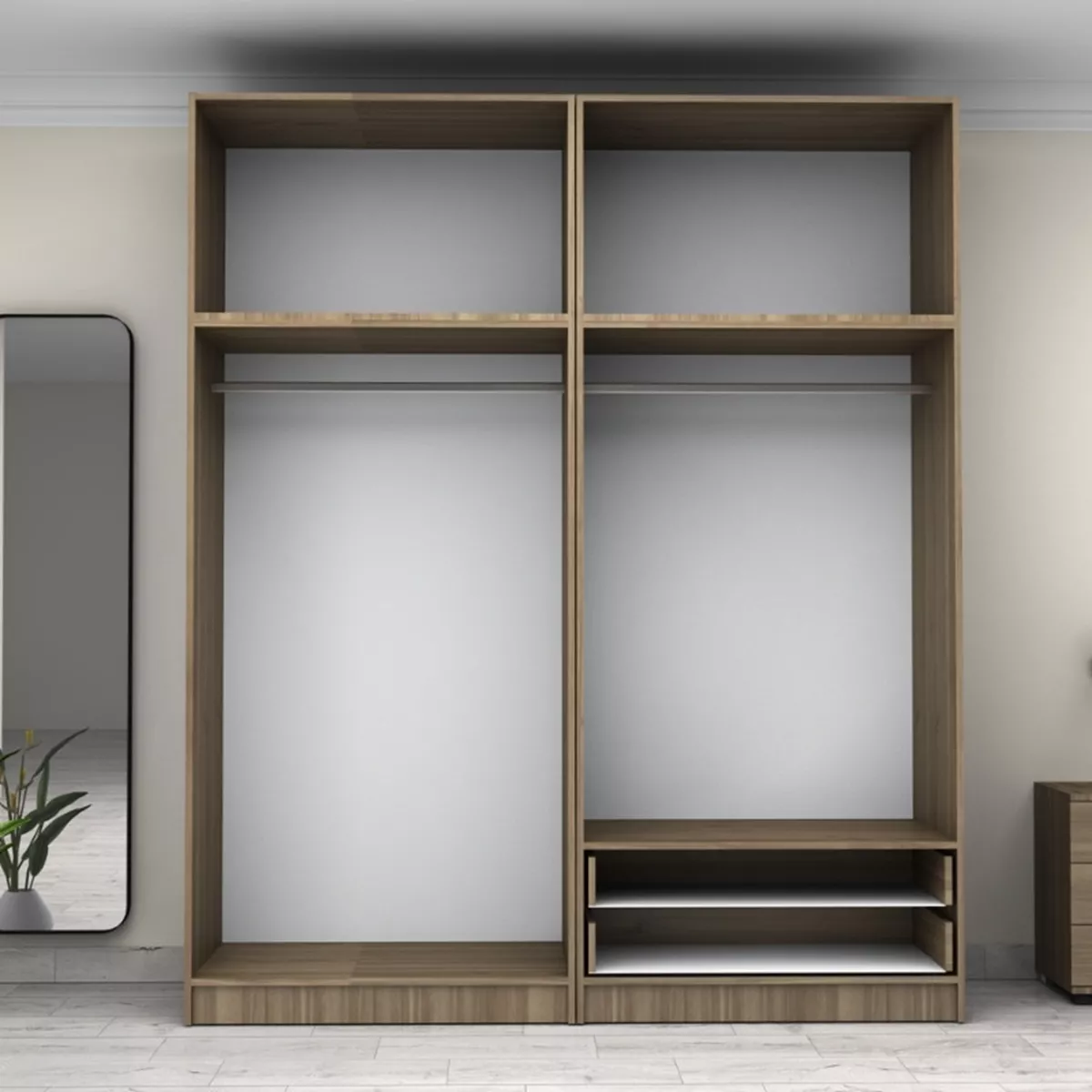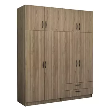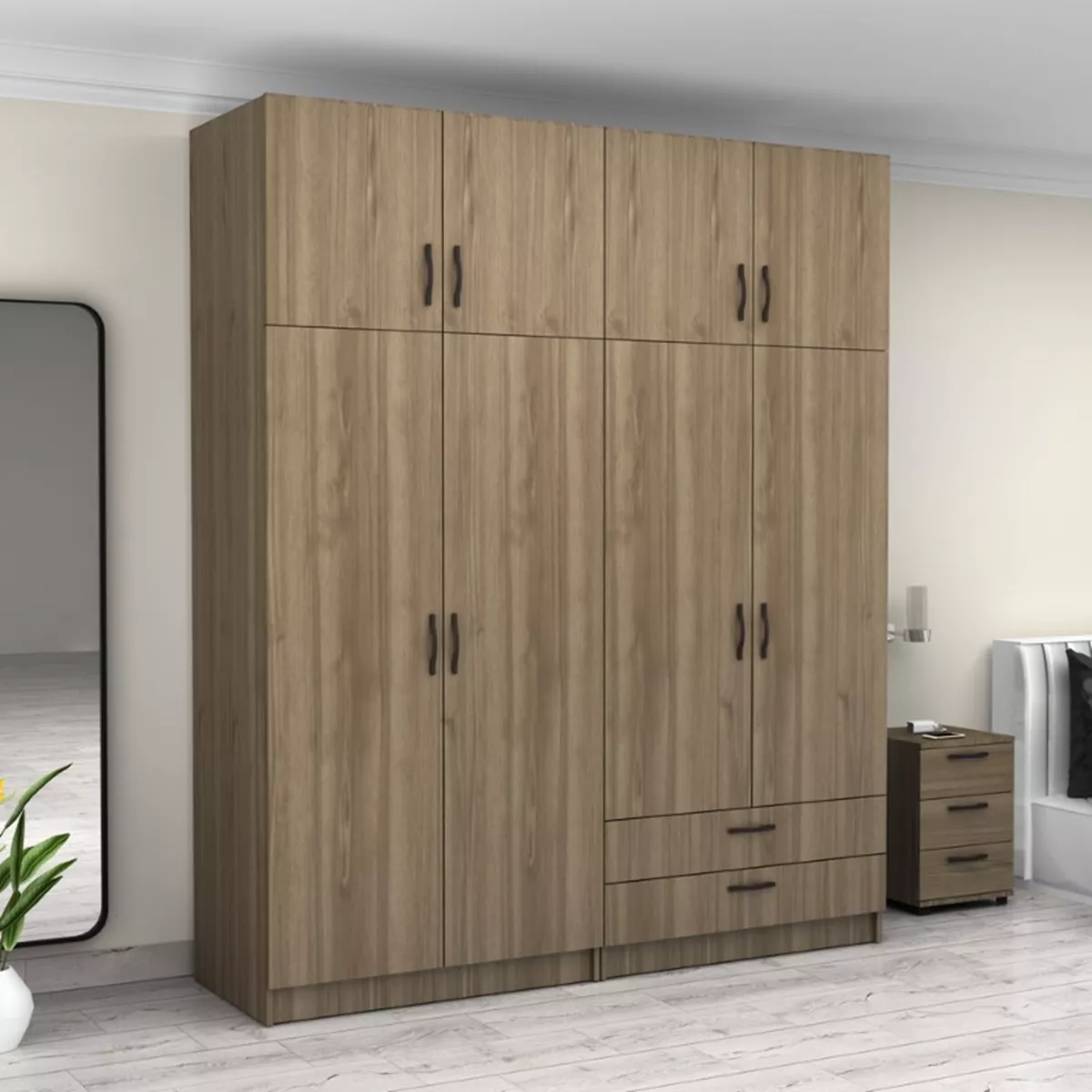 Ντουλάπα ρούχων Victoria Megapap τετράφυλλη με πατάρι και συρτάρια χρώμα καρυδί 200x60x240εκ.