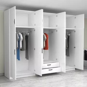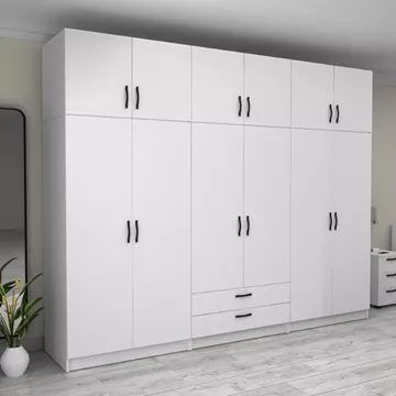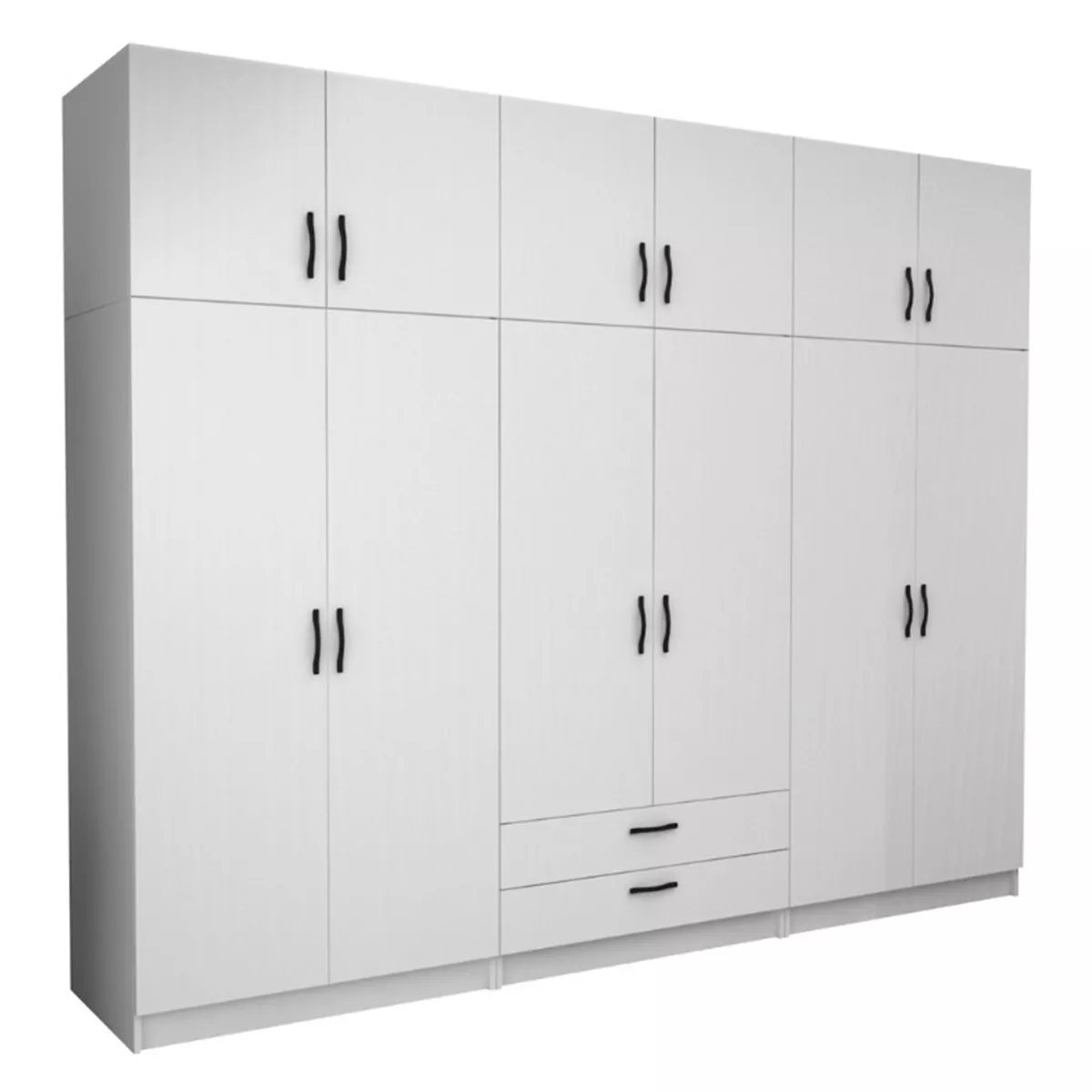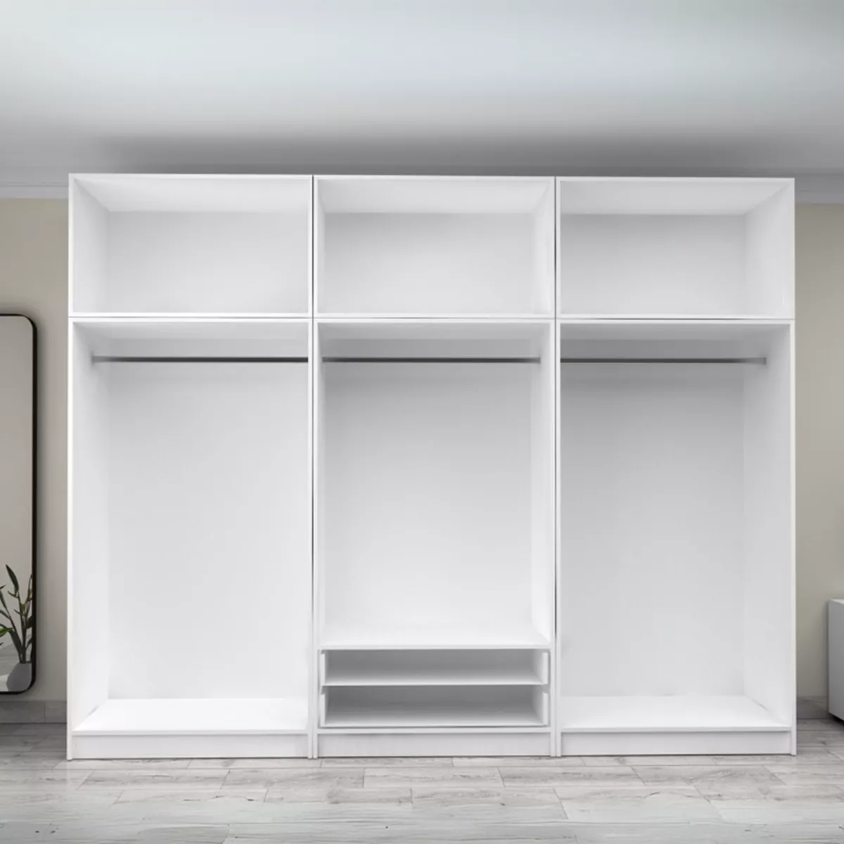 Ντουλάπα ρούχων Victoria Megapap εξάφυλλη με πατάρι και συρτάρια χρώμα λευκό 300x60x240εκ.