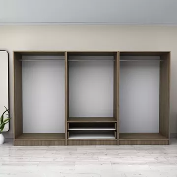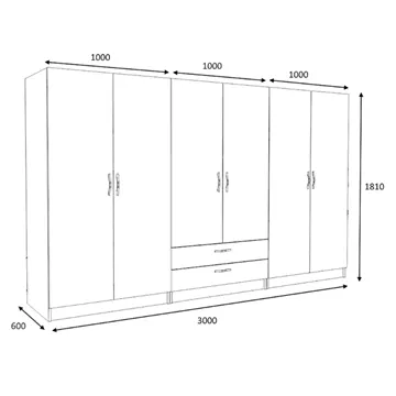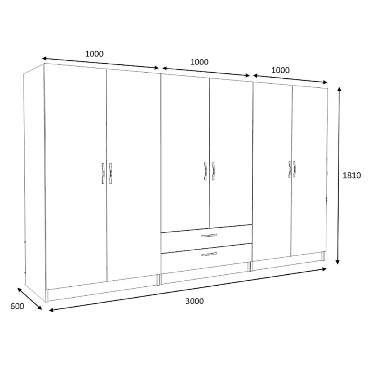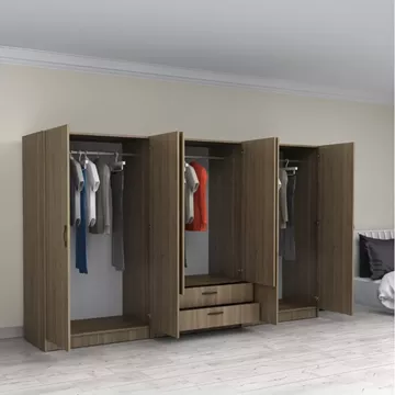 Ντουλάπα ρούχων Victoria Megapap εξάφυλλη με συρτάρια χρώμα καρυδί 300x60x181εκ.