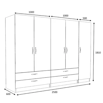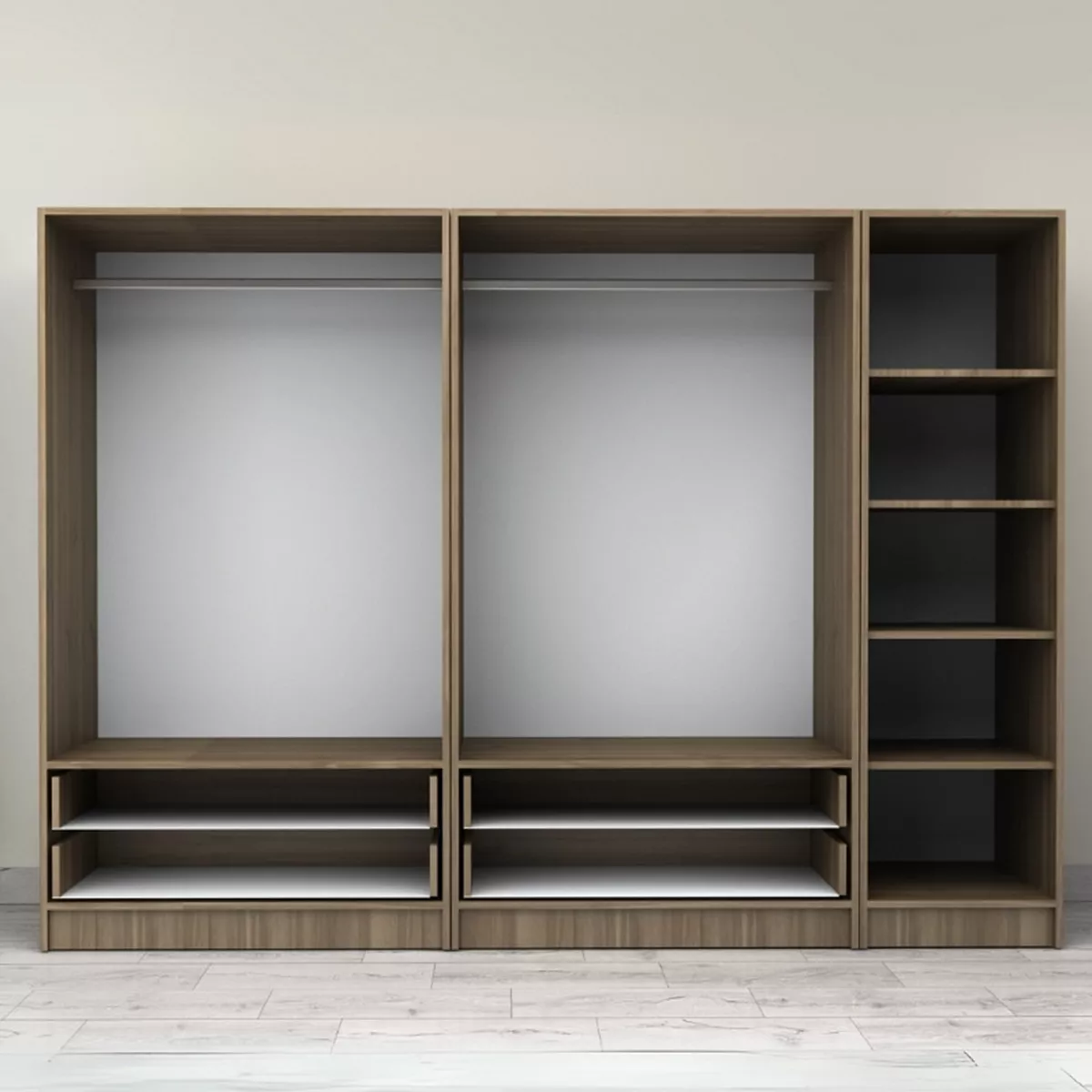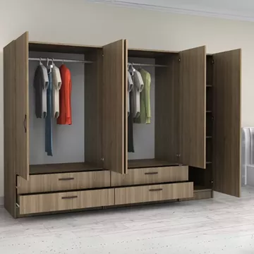 Ντουλάπα ρούχων Victoria Megapap πεντάφυλλη με συρτάρια χρώμα καρυδί 250x60x181εκ.
