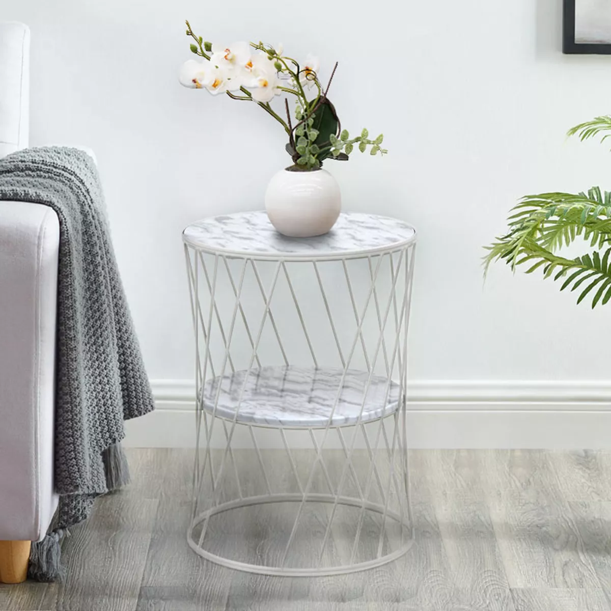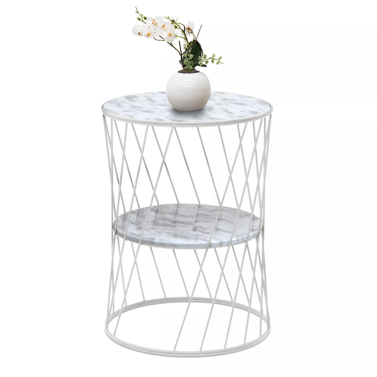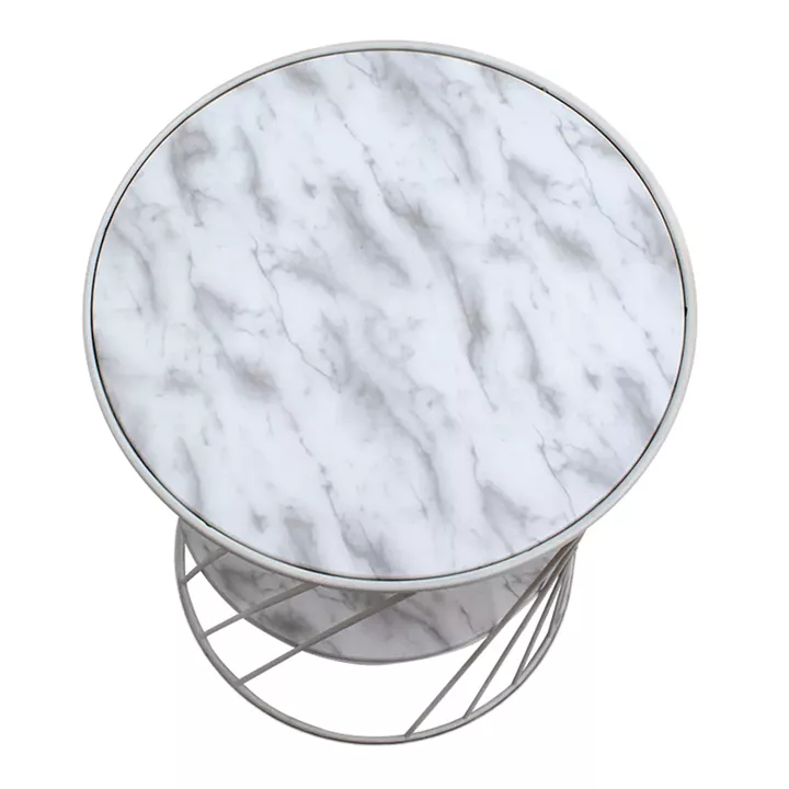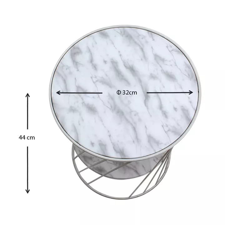 Βοηθητικό τραπεζάκι Jaspin Megapap μεταλλικό - Mdf χρώμα λευκό-λευκό εφέ μαρμάρου 32x32x44εκ.