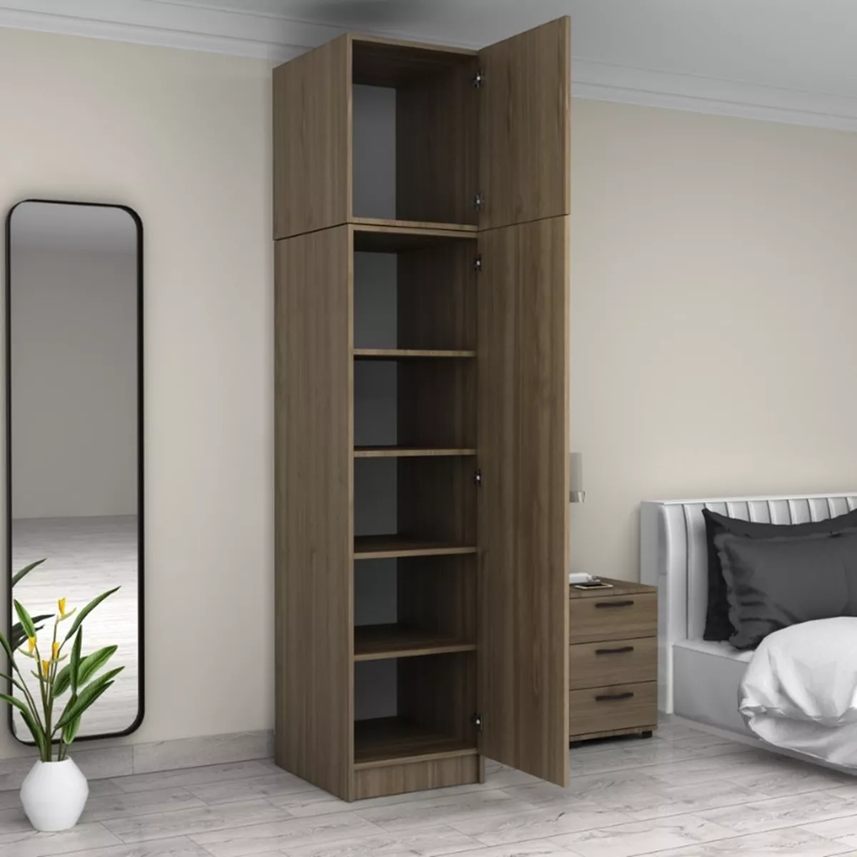 Ντουλάπα ρούχων Victoria Megapap μονόφυλλη με πατάρι χρώμα καρυδί 50x60x240εκ.