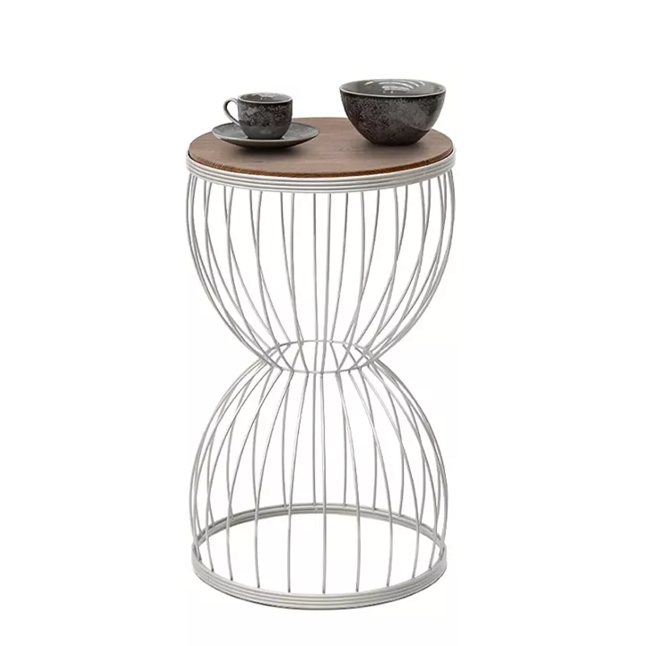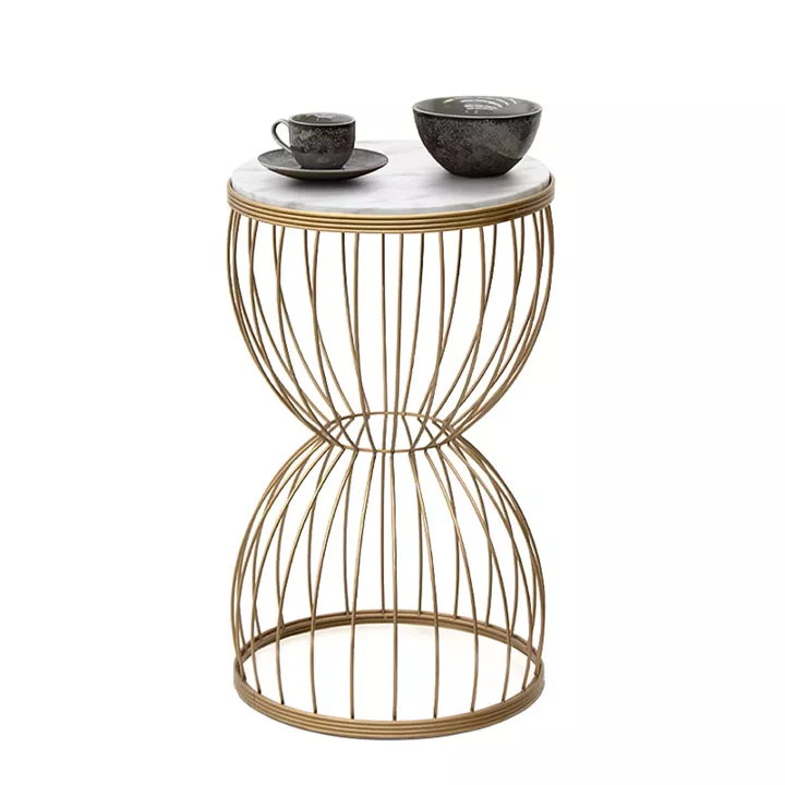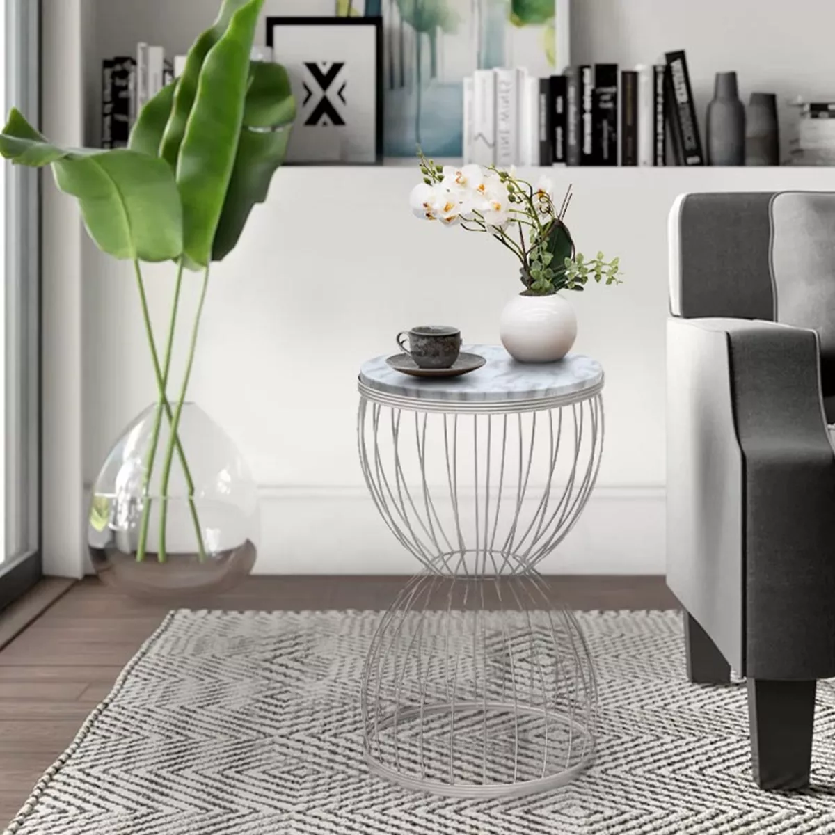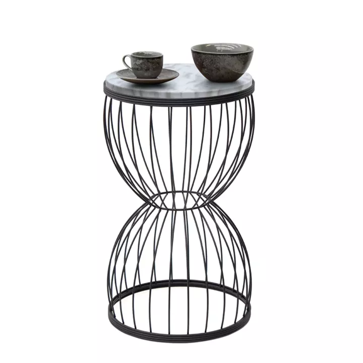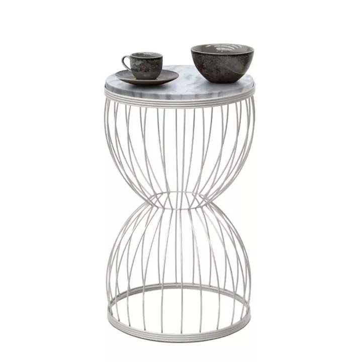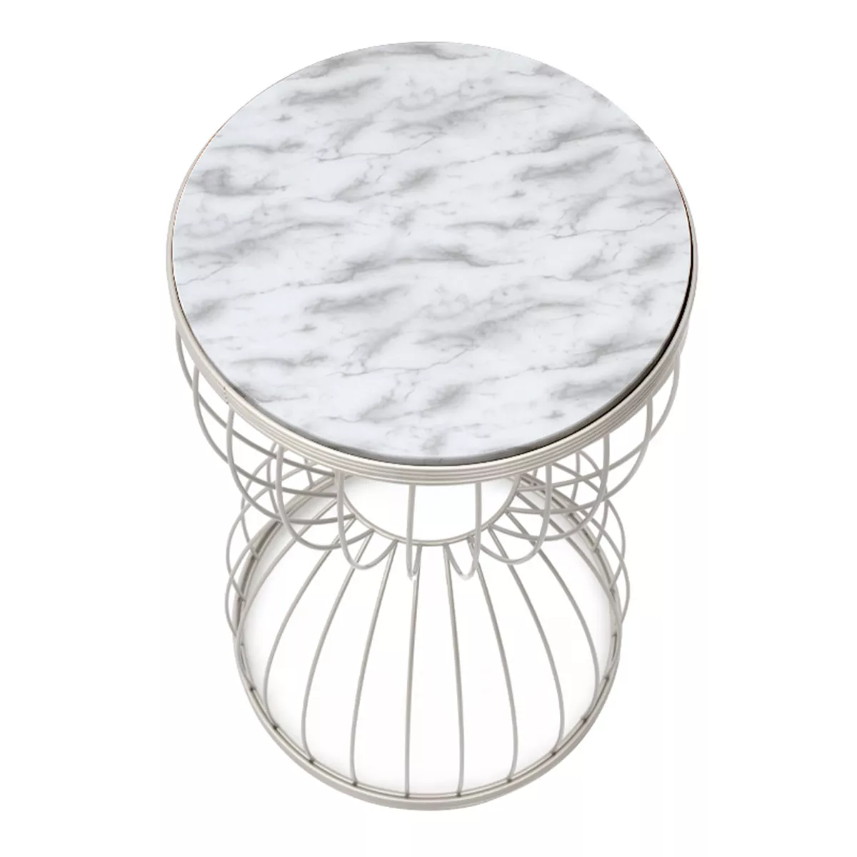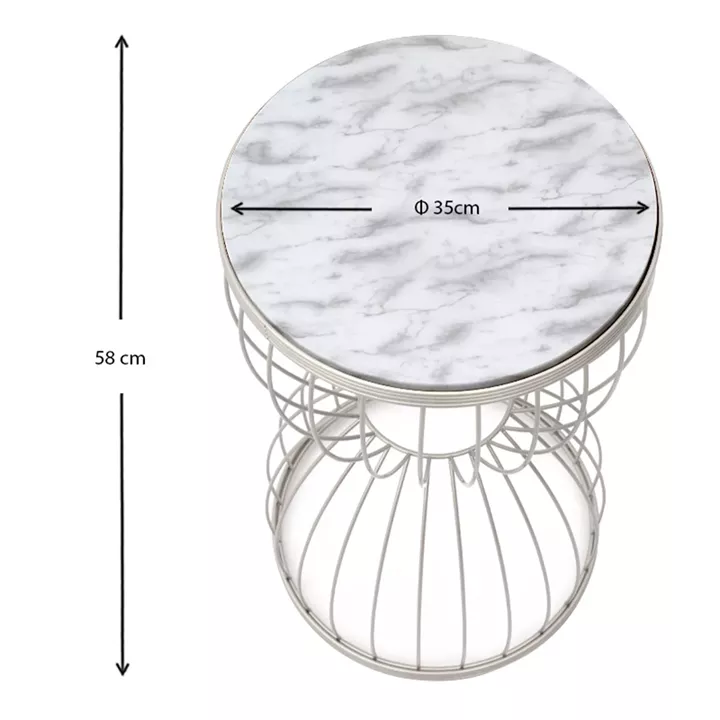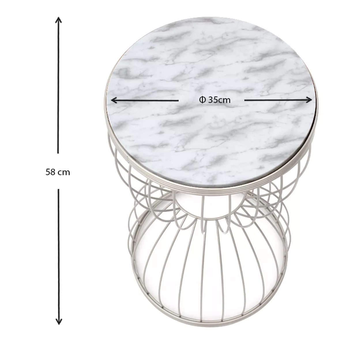 Βοηθητικό τραπεζάκι Pino Megapap μεταλλικό - Mdf χρώμα λευκό - λευκό εφέ μαρμάρου 35x35x58εκ.