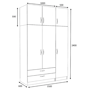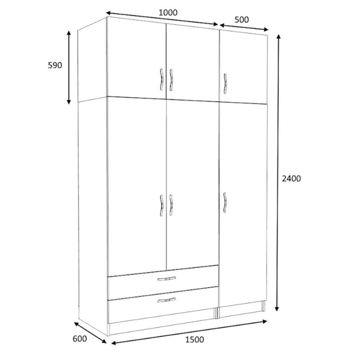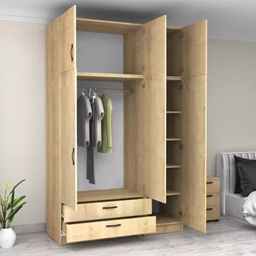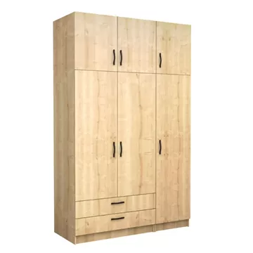 Ντουλάπα ρούχων Victoria Megapap τρίφυλλη με πατάρι και συρτάρια χρώμα φυσικό οξιάς 150x60x240εκ.
