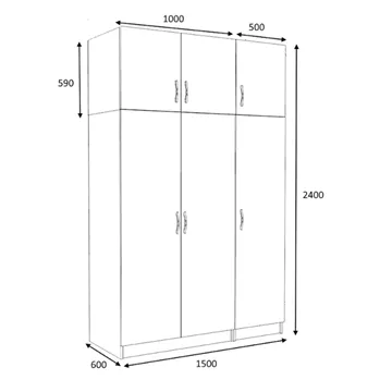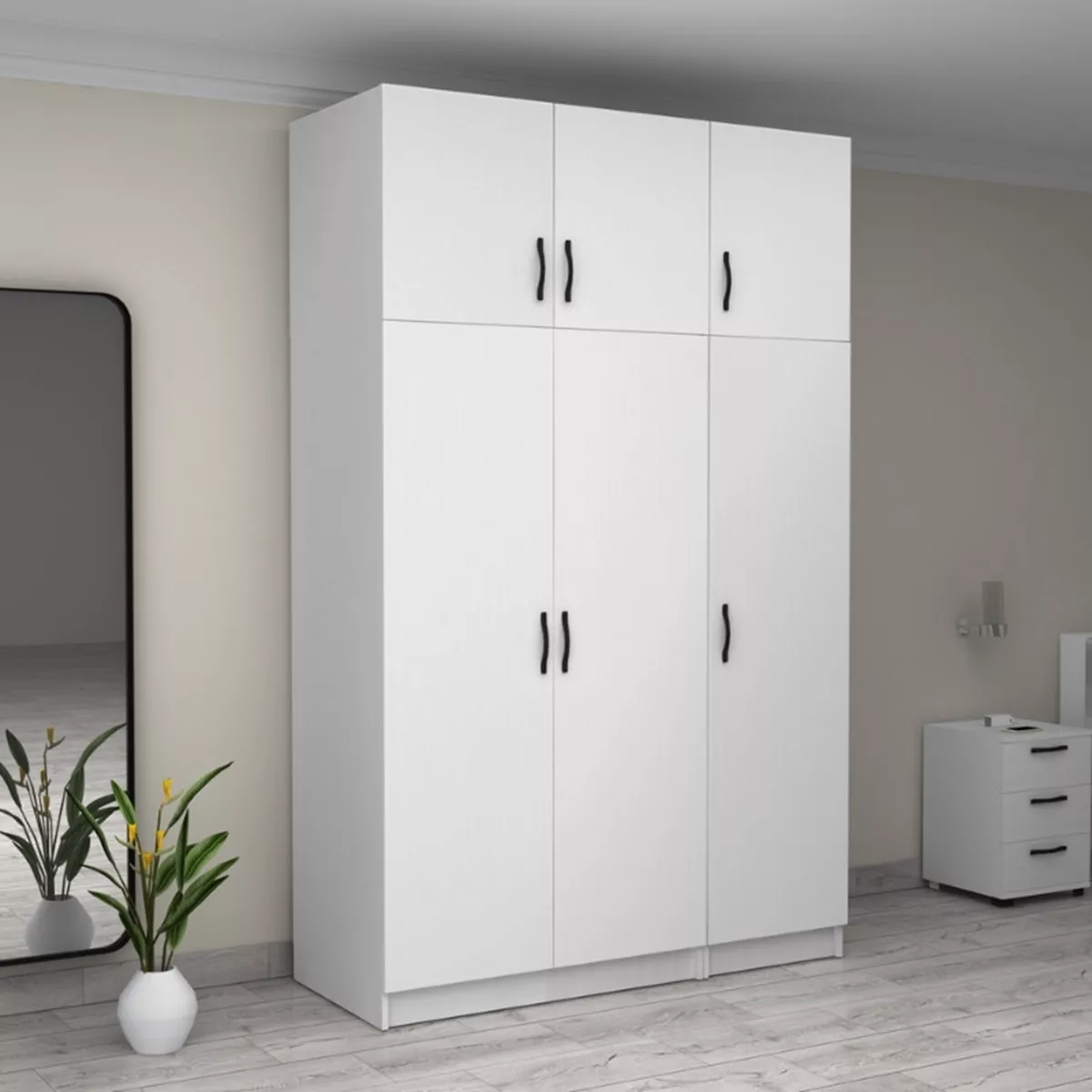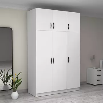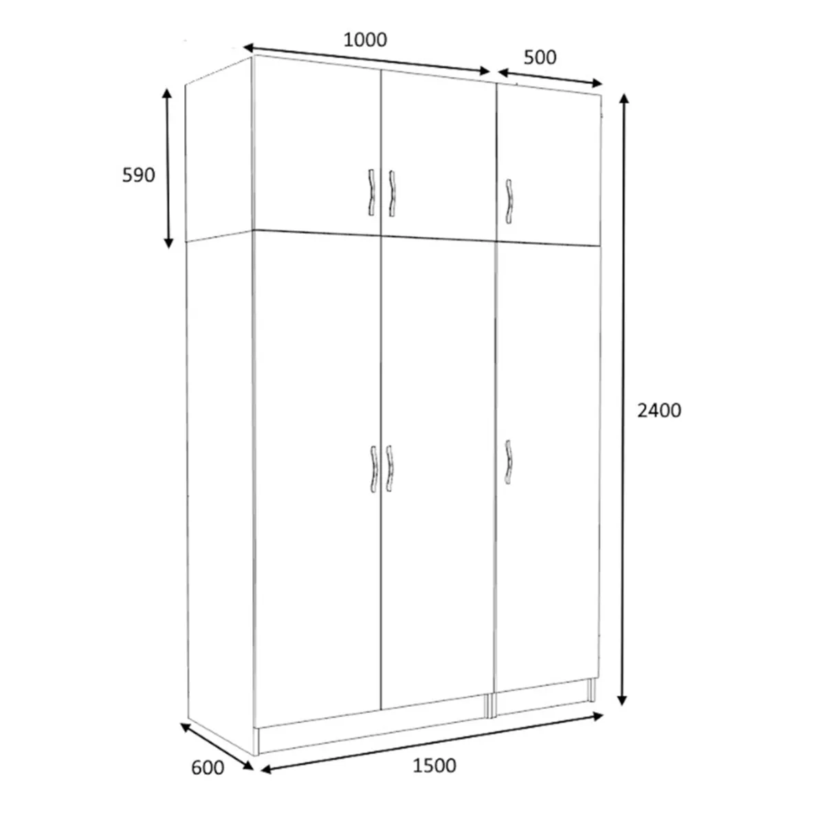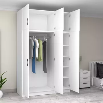 Ντουλάπα ρούχων Victoria Megapap τρίφυλλη με πατάρι χρώμα λευκό 150x60x240εκ.