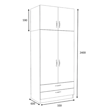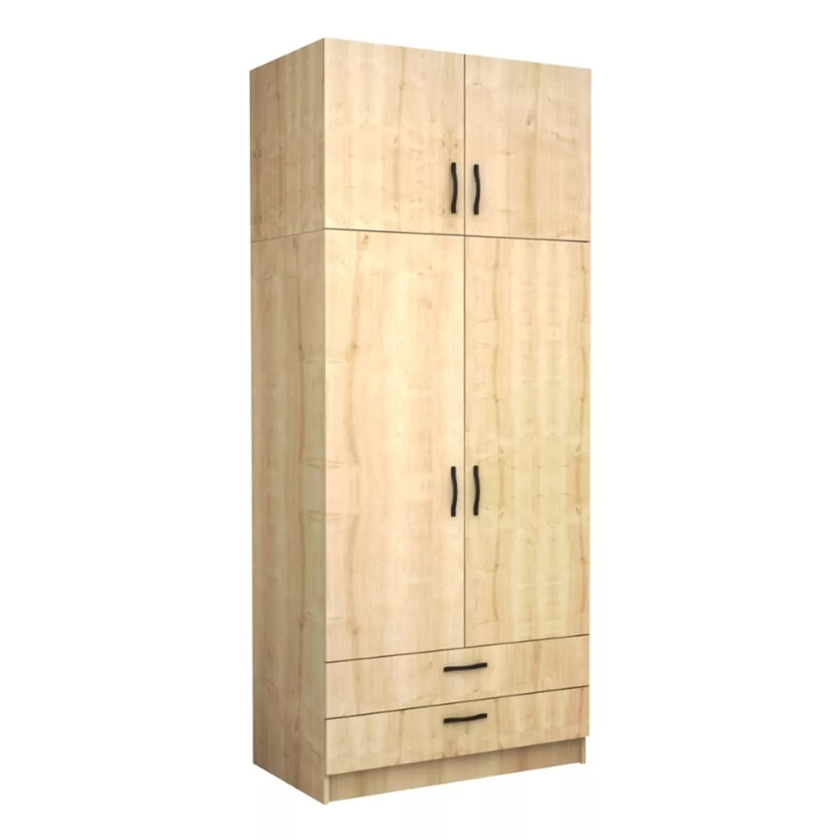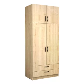 Ντουλάπα ρούχων Victoria Megapap δίφυλλη με πατάρι και συρτάρια χρώμα φυσικό οξιάς 100x60x240εκ.