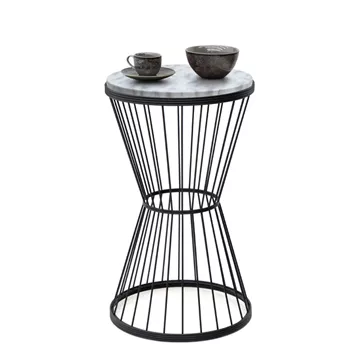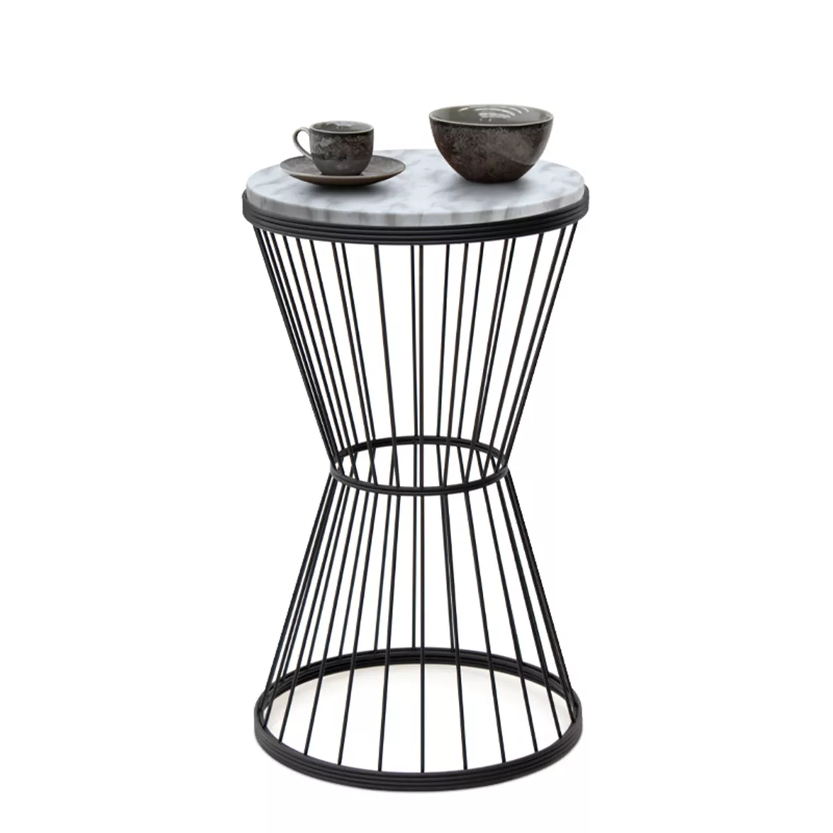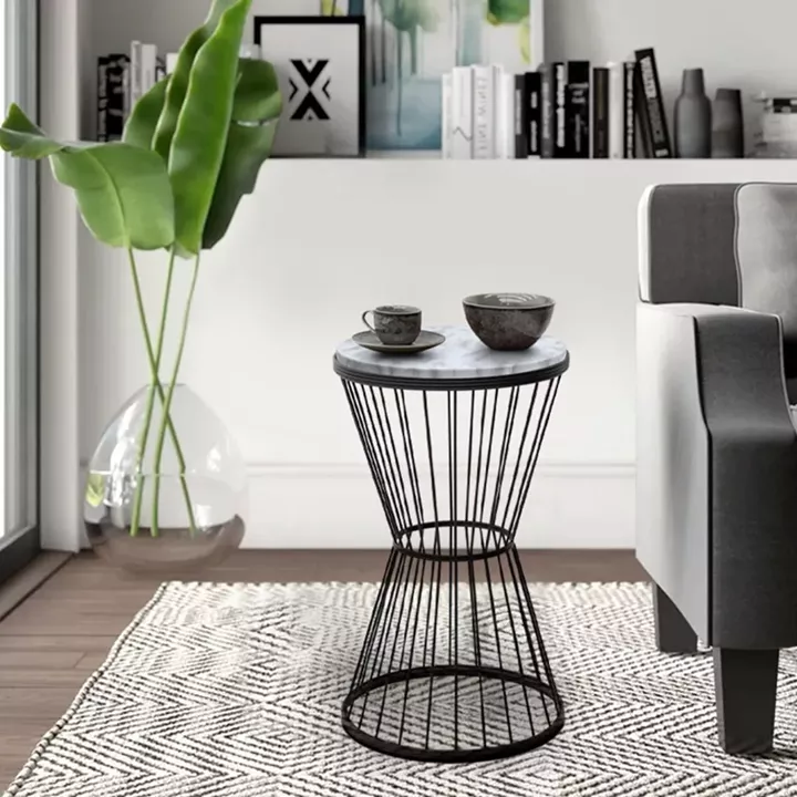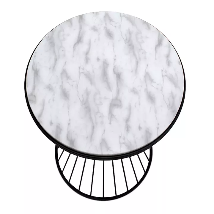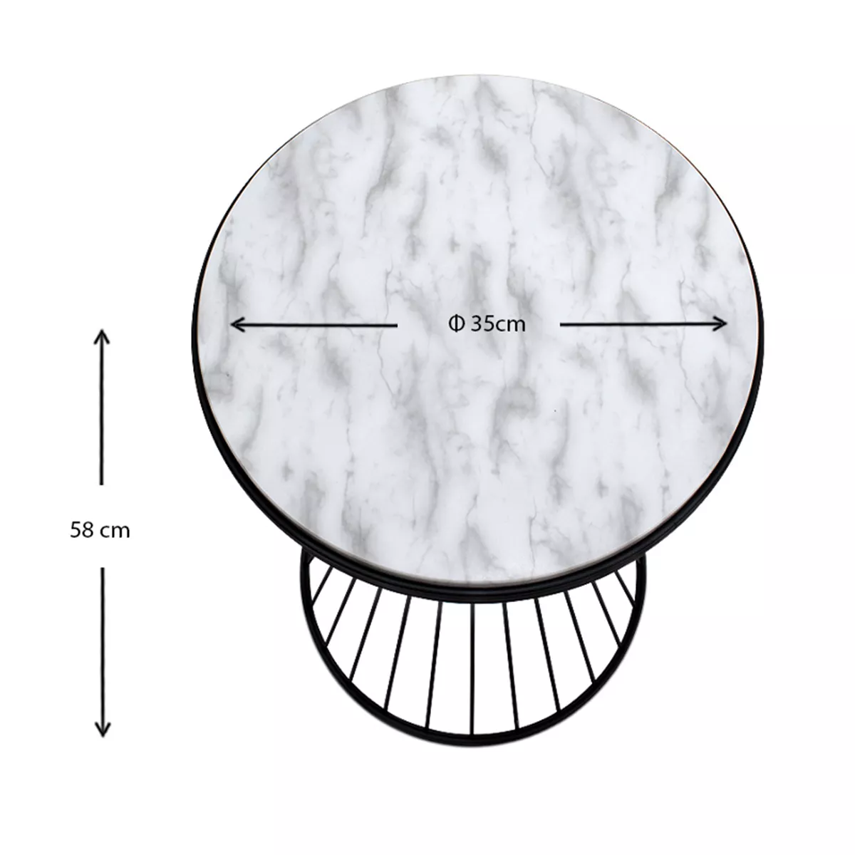 Βοηθητικό τραπεζάκι Hoffman Megapap μεταλλικό - Mdf χρώμα μαύρο - λευκό εφέ μαρμάρου 35x35x58εκ.