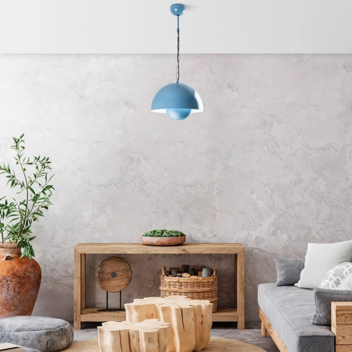 Φωτιστικό οροφής Neptun Megapap E27 μεταλλικό μονόφωτο χρώμα γαλάζιο Ø30x70εκ.