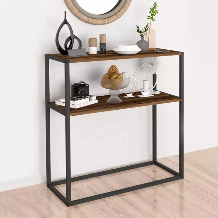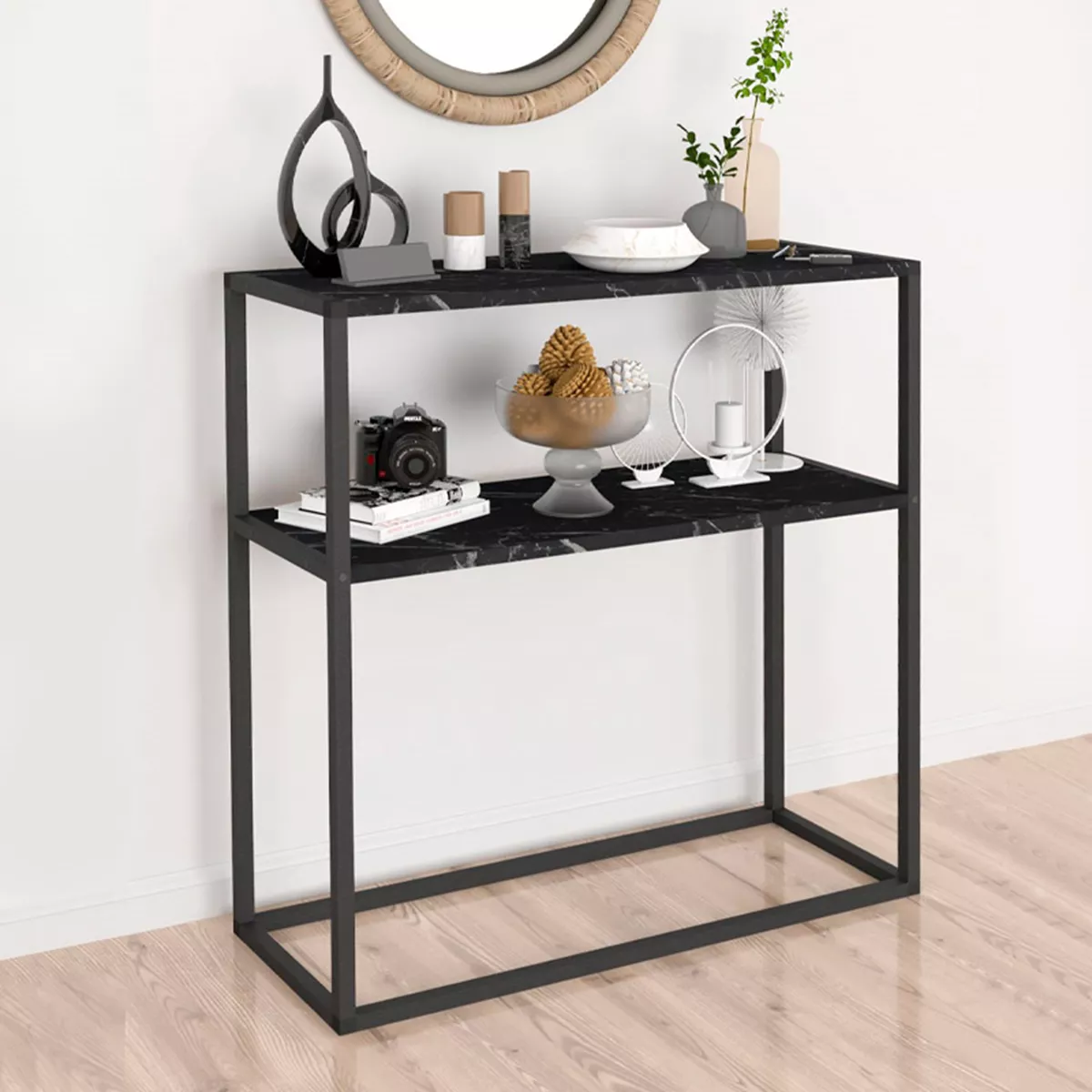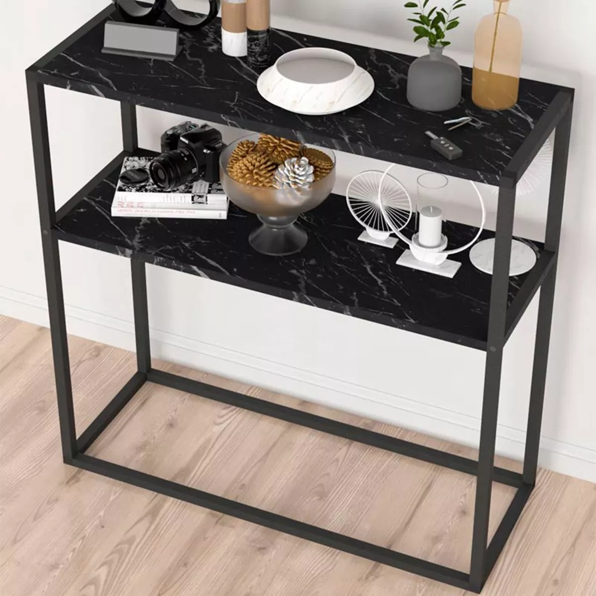 Κονσόλα Castel Megapap μεταλλική - μελαμίνης χρώμα μαύρο εφέ μαρμάρου 90x33,5x90εκ.