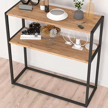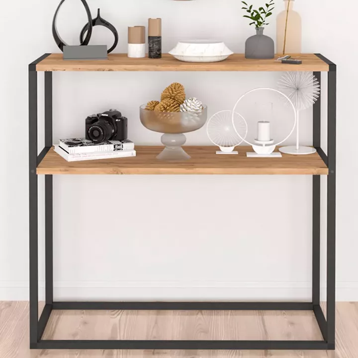 Κονσόλα Castel Megapap μεταλλική - μελαμίνης χρώμα μαύρο - pine oak 90x33,5x90εκ.