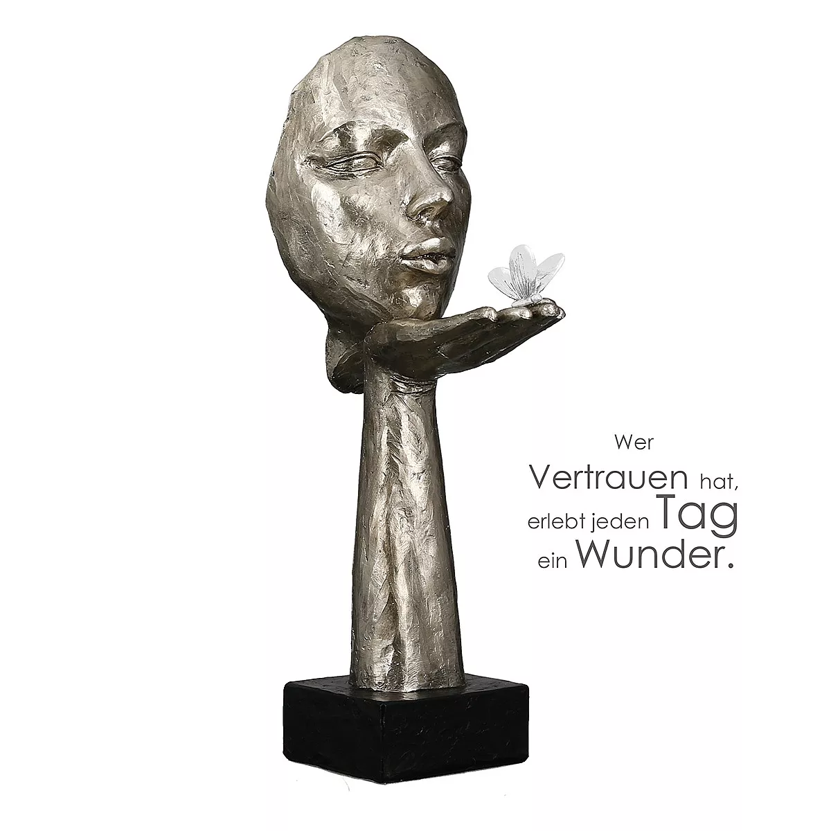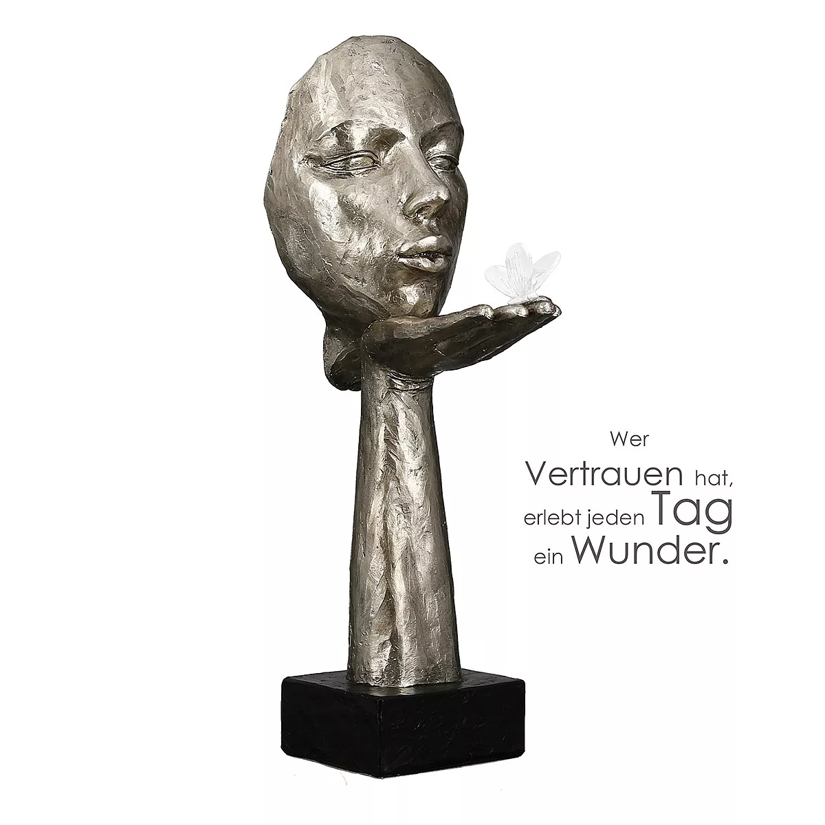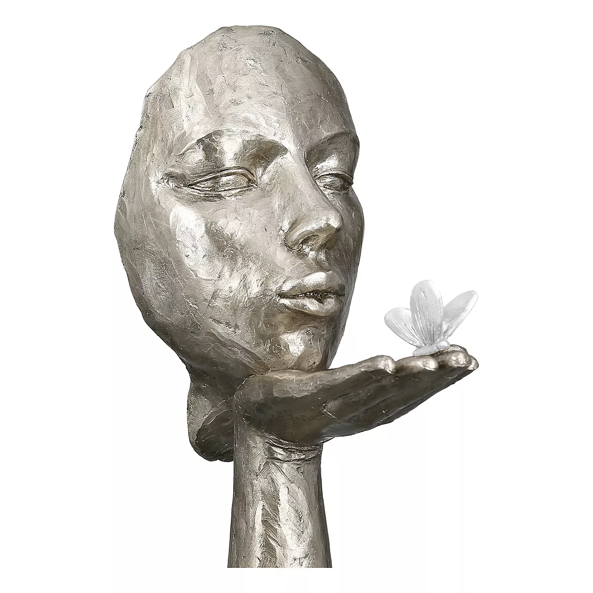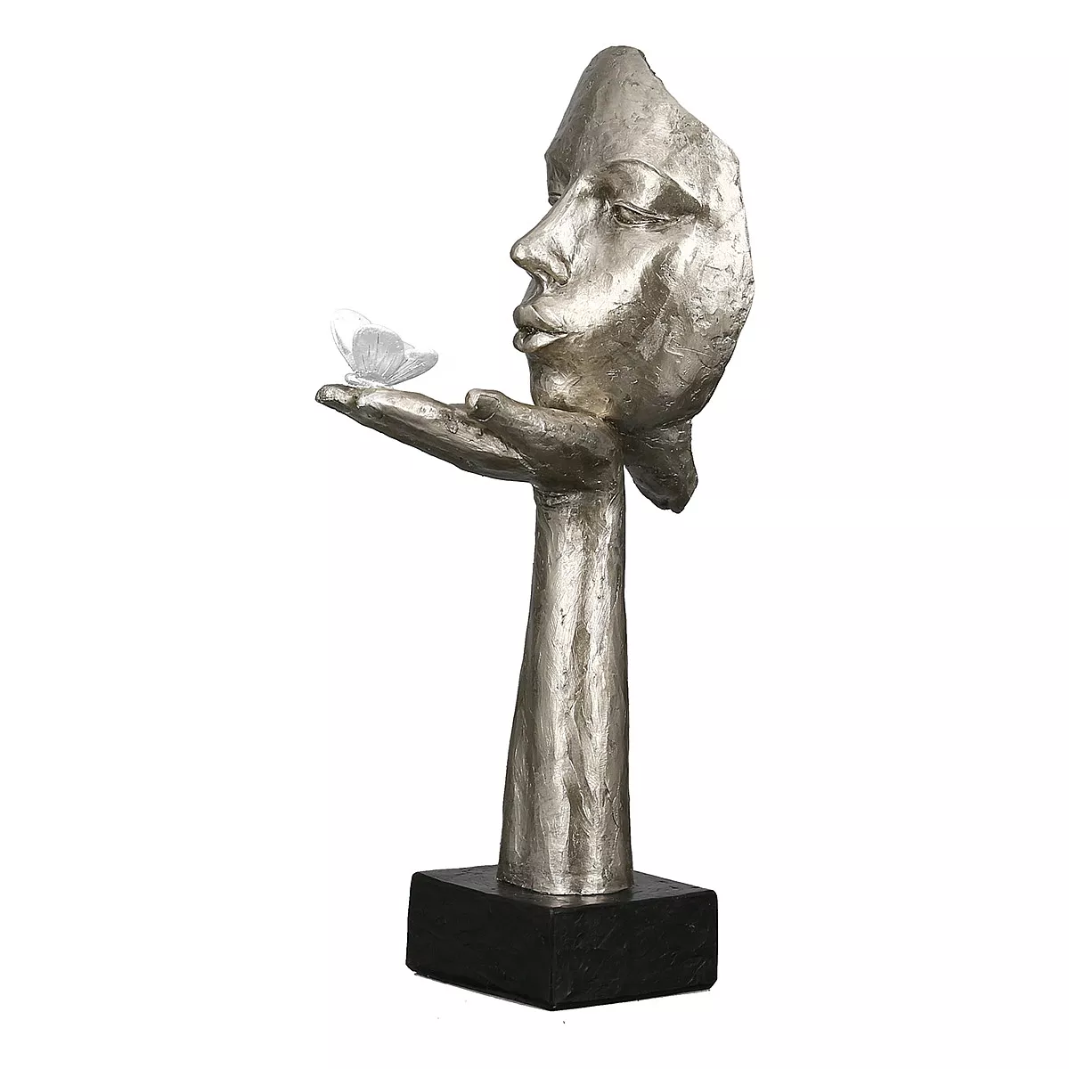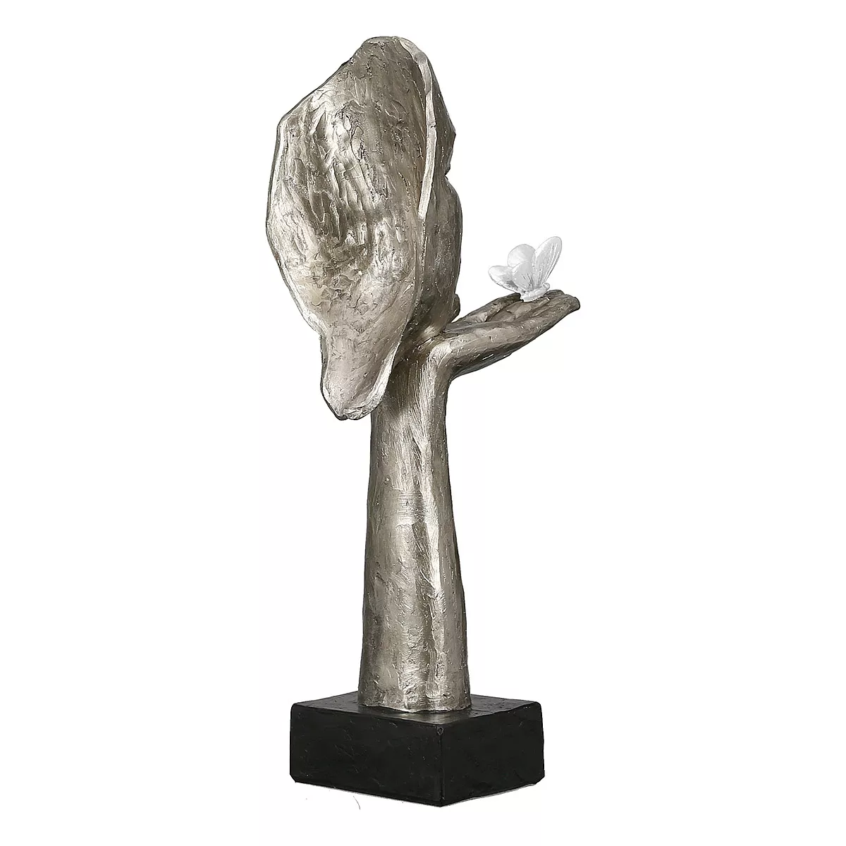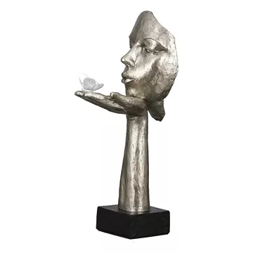 Διακοσμητικό ArteLibre Πρόσωπο Κρατεί Πεταλούδα Σε Βάση Ασημί/Μαύρο Polyresin 16.5x10x34cm