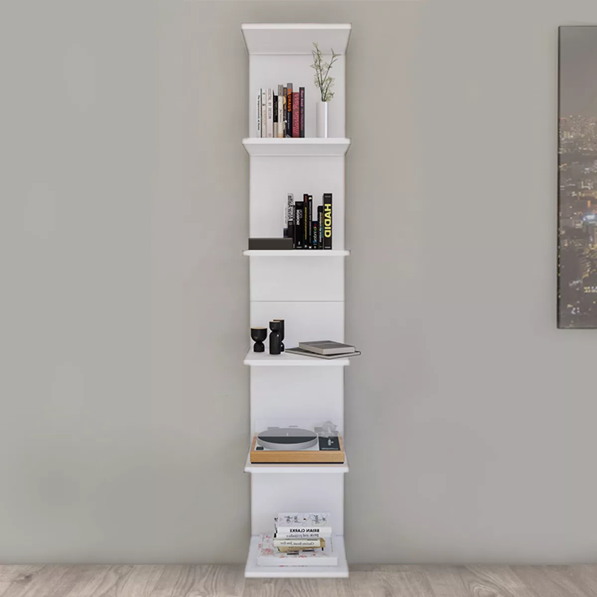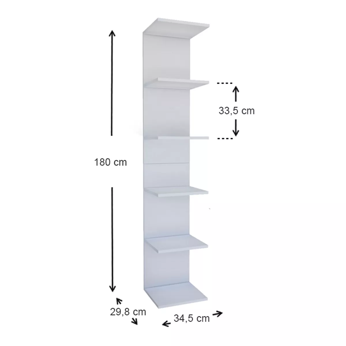 Βιβλιοθήκη - Ραφιέρα τοίχου μελαμίνης Ogden Megapap χρώμα λευκό 34,5x30x180εκ.