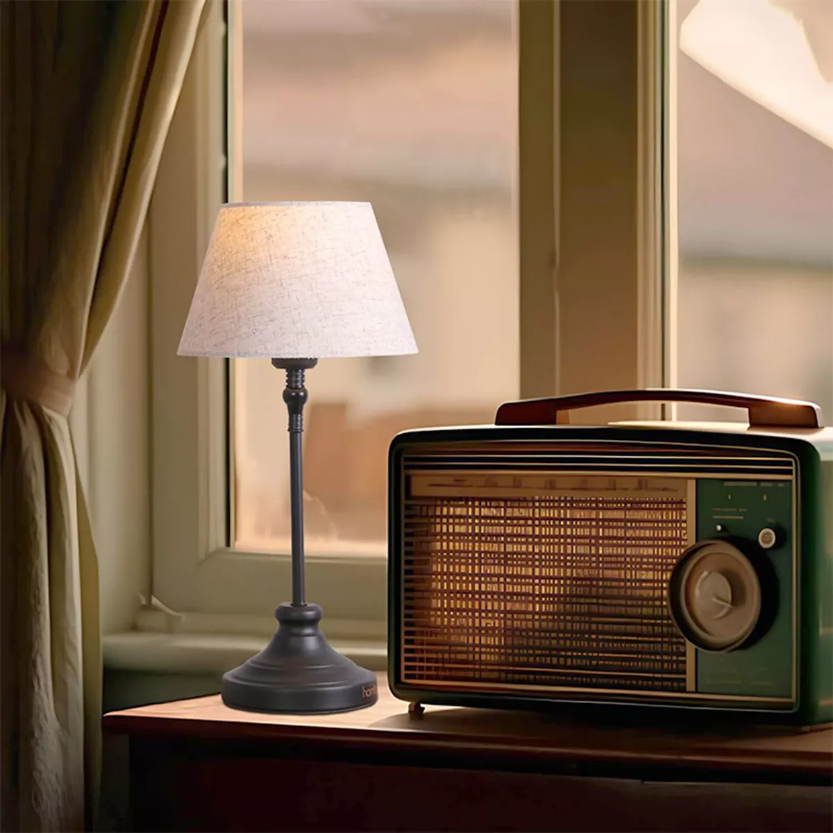 Φωτιστικό επιτραπέζιο Grace Megapap E27 μεταλλικό - ύφασμα Pvc χρώμα μαύρο - κρεμ Ø22x48εκ.