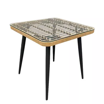 Τραπέζι Κήπου ArteLibre CALI Φυσικό/Μαύρο Μέταλλο/Rattan/Γυαλί 80x80x78cm