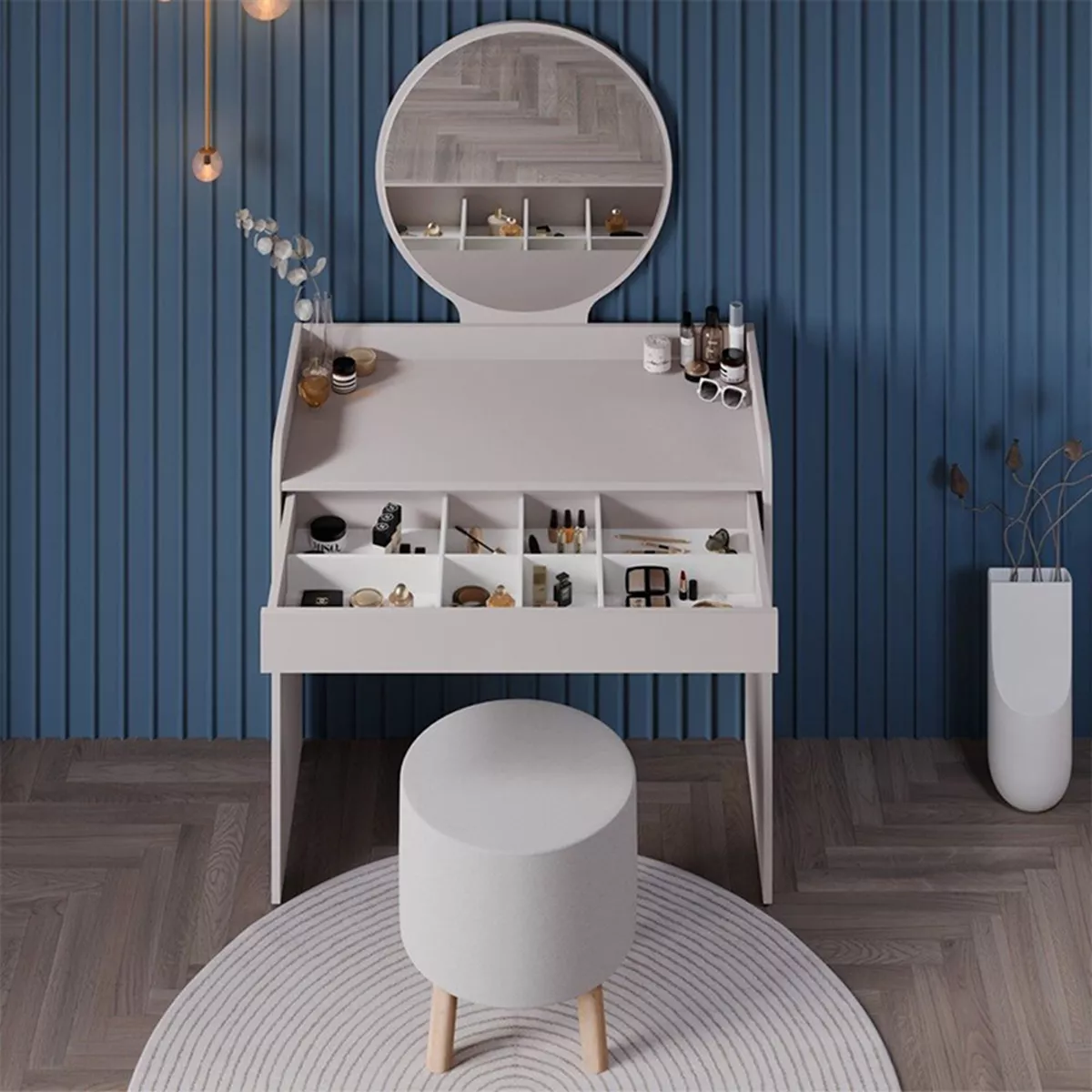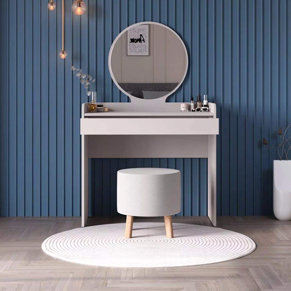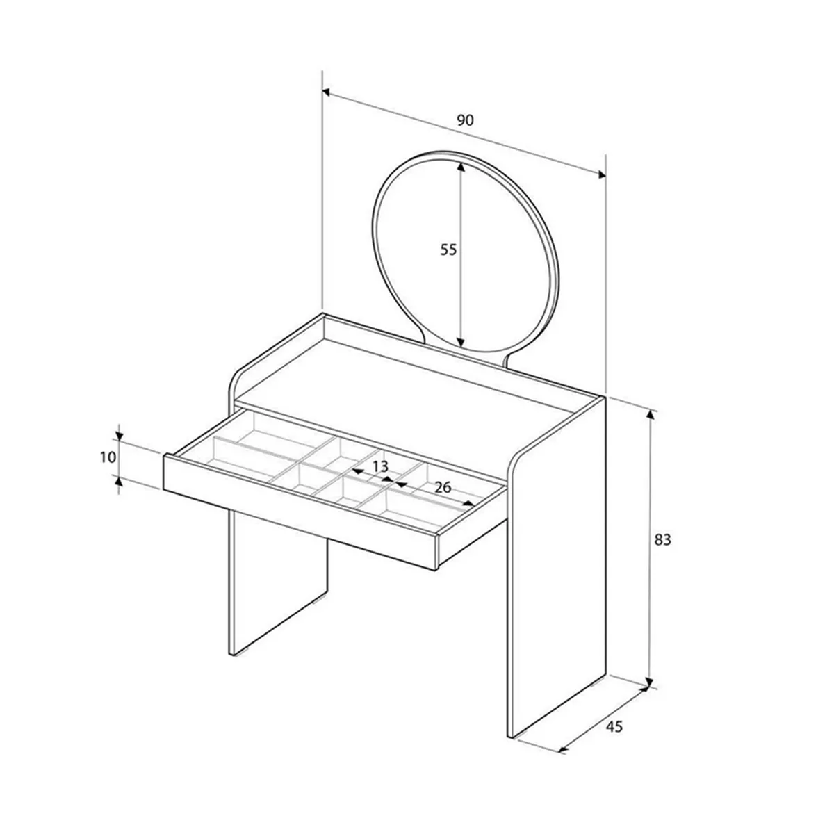 Τουαλέτα με καθρέπτη Curve Megapap χρώμα λευκό του πάγου 90x47x142εκ.