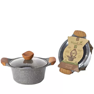 Κατσαρόλα αντικολλητική αλουμινίου με γυάλινο καπάκι WoodLine φ20cm