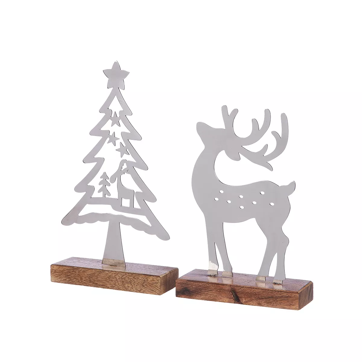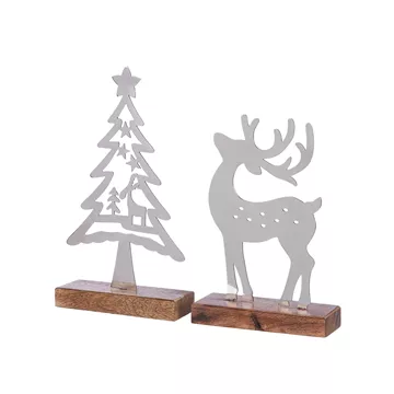 Stand Relief Reindeer Χριστουγεννιάτικο Δέντρο "Reno" Mango Ξύλο Ατσάλι Ασημένιο PU 4 2 Pcs. Assorted 15X5X27.5Cm