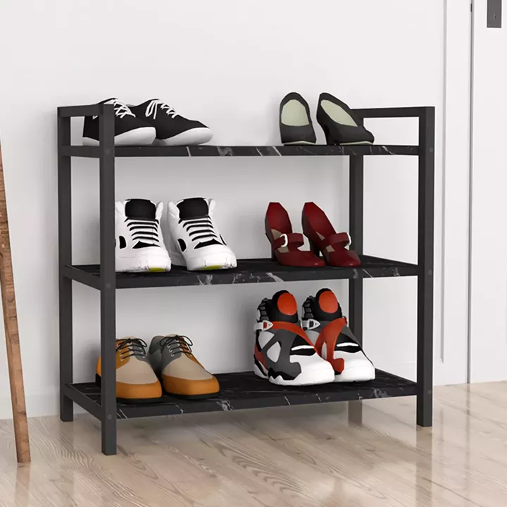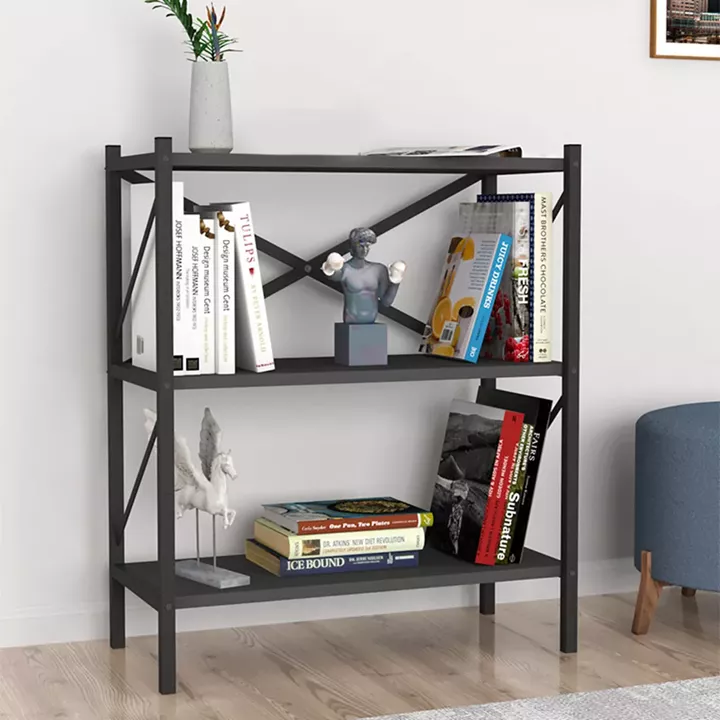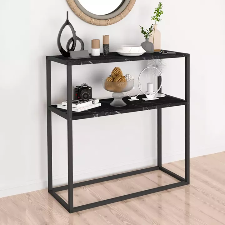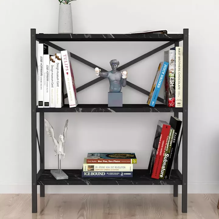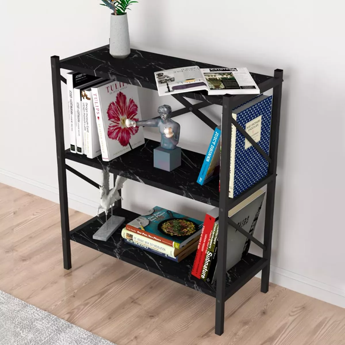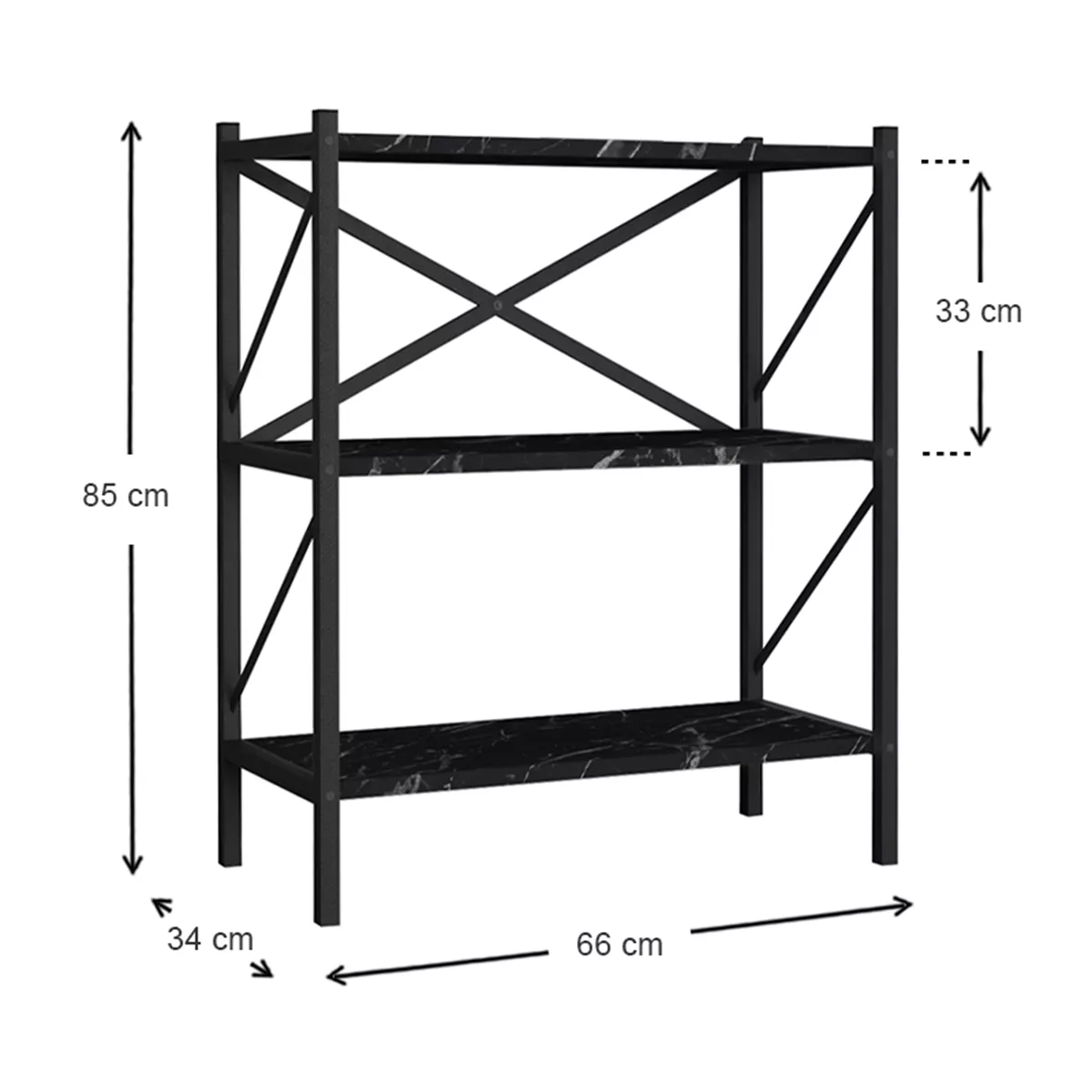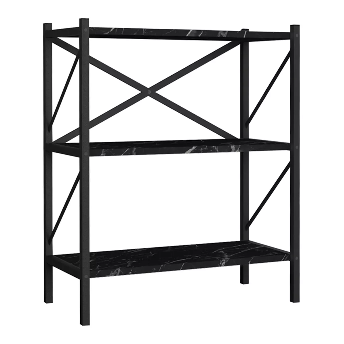 Βιβλιοθήκη Jocasta Megapap μεταλλική - μελαμίνης χρώμα μαύρο εφέ μαρμάρου 66x34x85εκ.