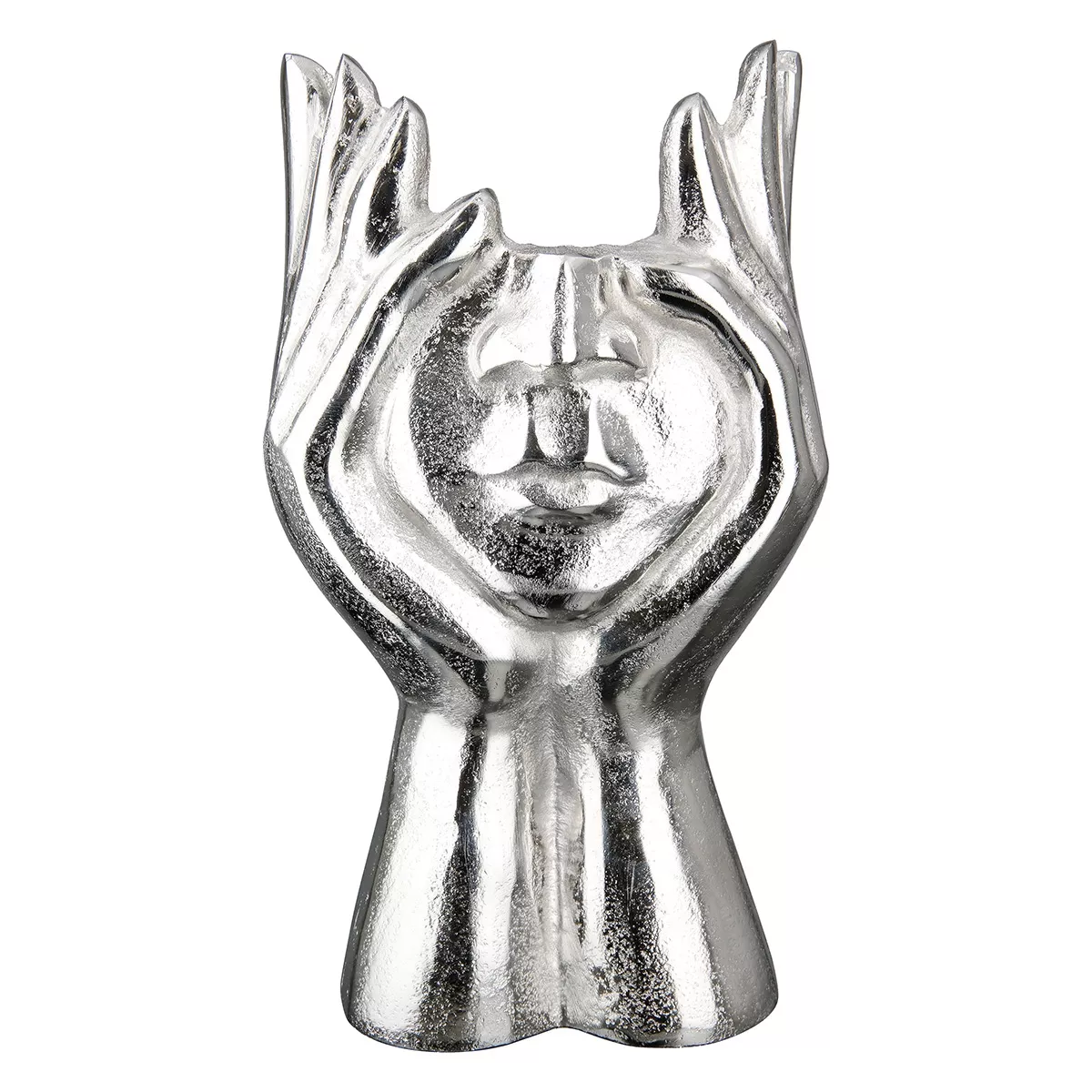 Face Βάζο Hands "Pose" Face Motif Αλουμίνιο Ασημένιο PU 1 18X12X30Cm