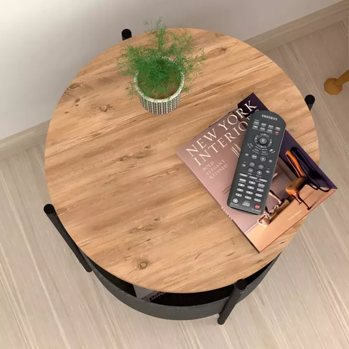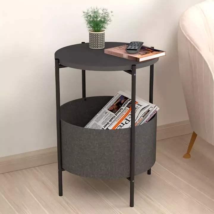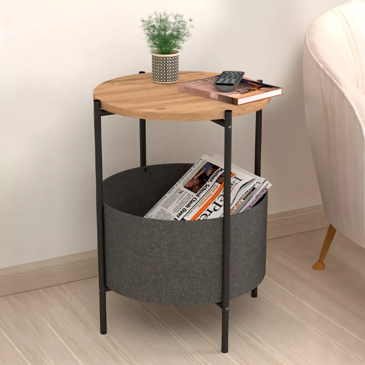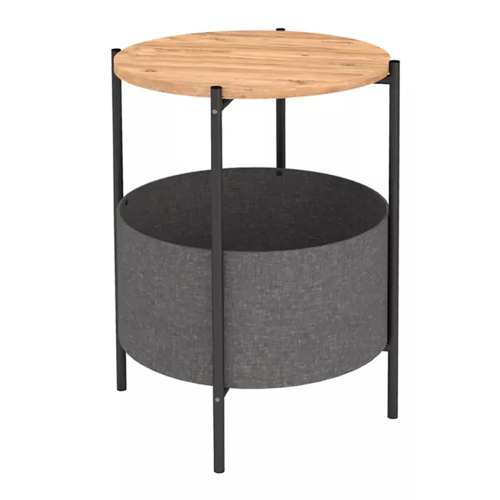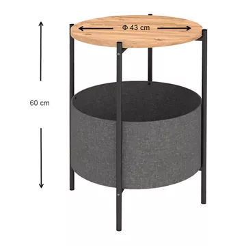Βοηθητικό τραπεζάκι Kalid Megapap μελαμίνης - υφασμάτινο χρώμα pine oak - γκρι 43x43x60εκ.