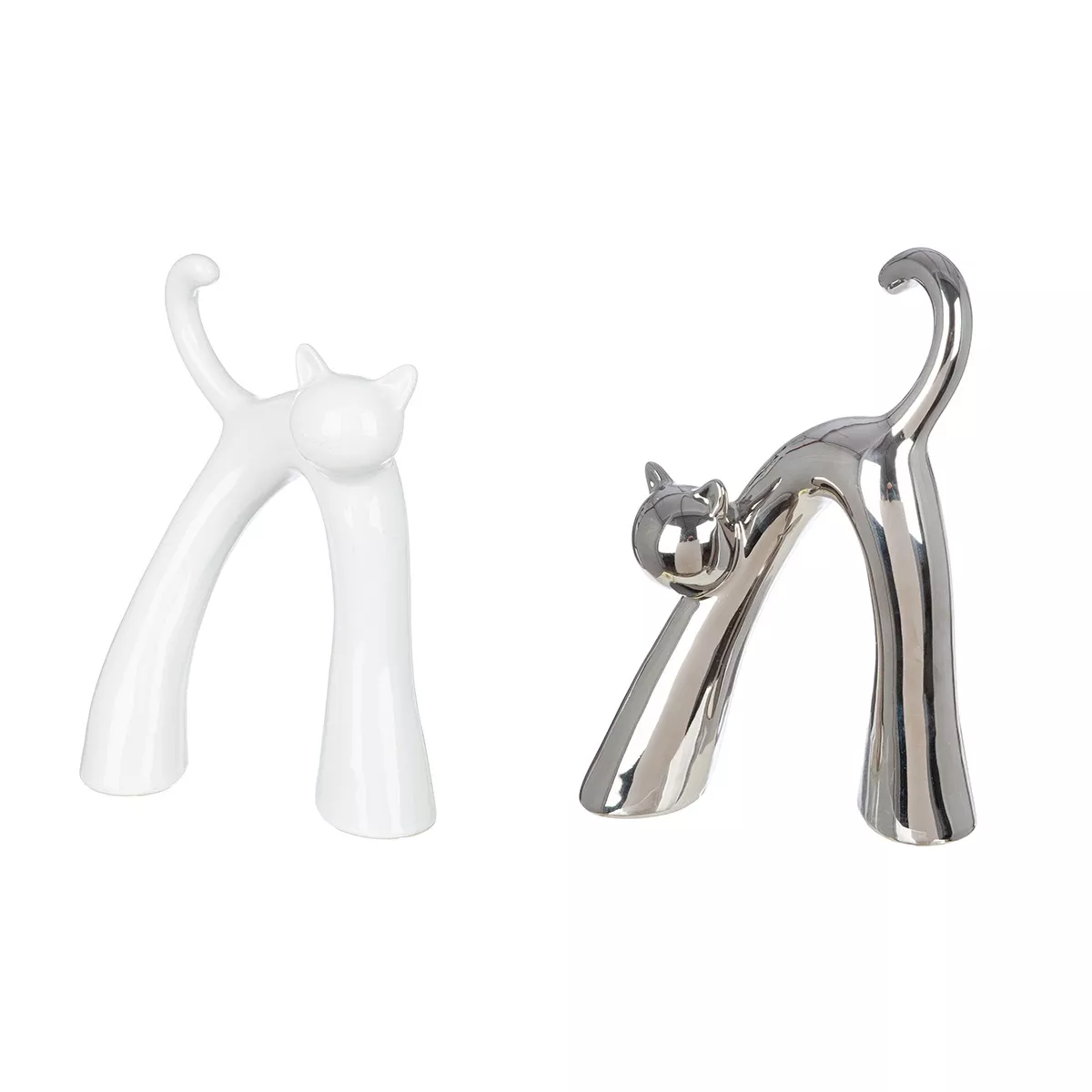Φιγούρα Cat "Kara" Κεραμικό Ασημένιο Λευκό PU 4 2 Pcs. Assorted 16X5X22Cm