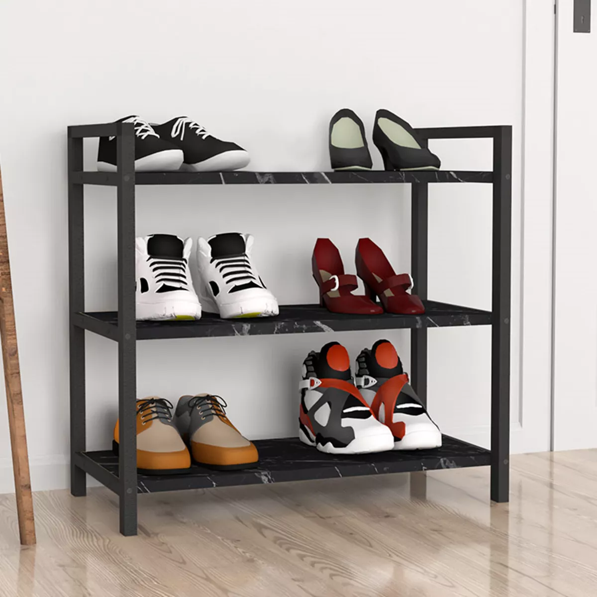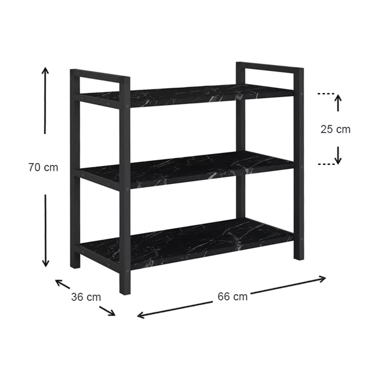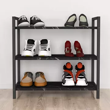 Παπουτσοθήκη Navari Megapap 9 ζευγών μεταλλική - μελαμίνης χρώμα μαύρο εφέ μαρμάρου 66x36x70εκ.