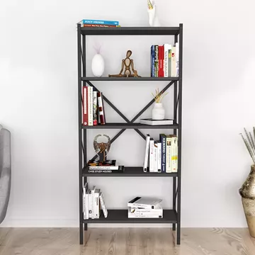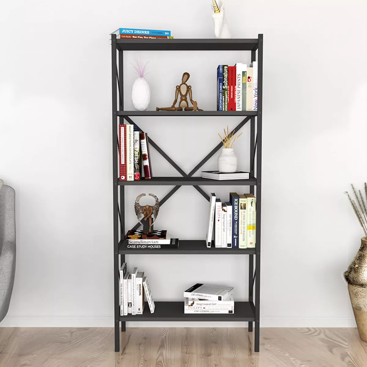 Βιβλιοθήκη Jocasta Megapap μεταλλική - μελαμίνης χρώμα ανθρακί 66x34x160εκ.