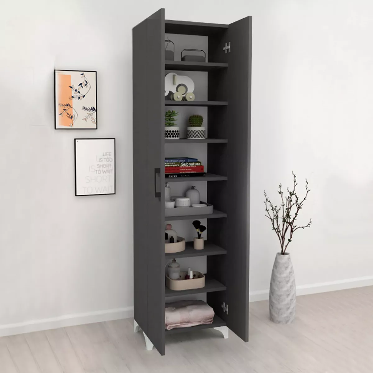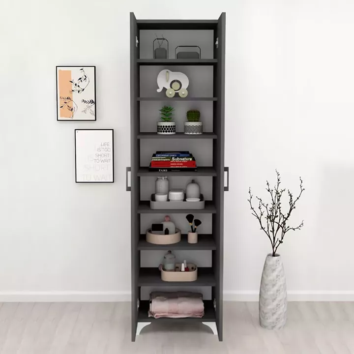 Ντουλάπα - Παπουτσοθήκη μελαμίνης Lilly Megapap χρώμα ανθρακί 49x32x178εκ.
