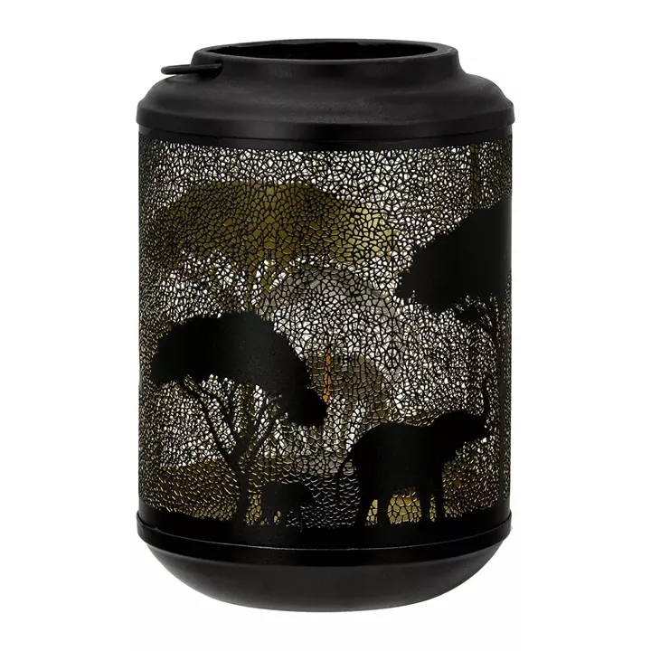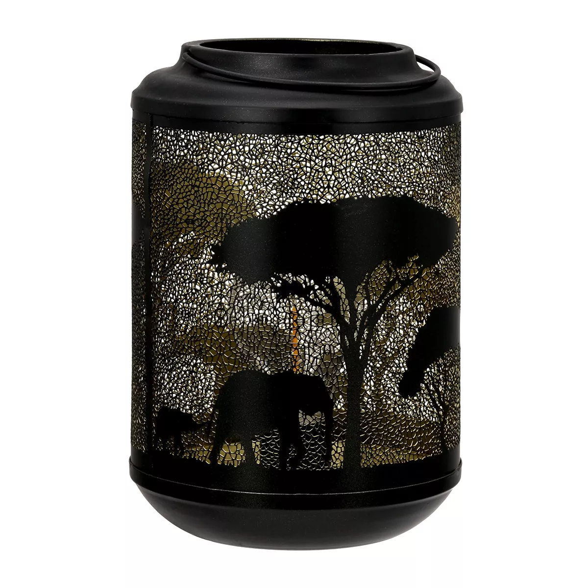 Φανάρι (Led) Κυλινδρικό Μοτίβο Ελέφαντα Μεταλλικό Μαύρο D14X20Cm D14X20Cm