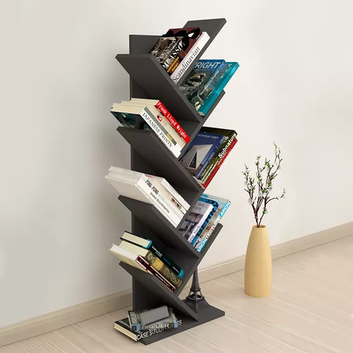 Βιβλιοθήκη μελαμίνης Milton Megapap χρώμα ανθρακί 44x22x121εκ.