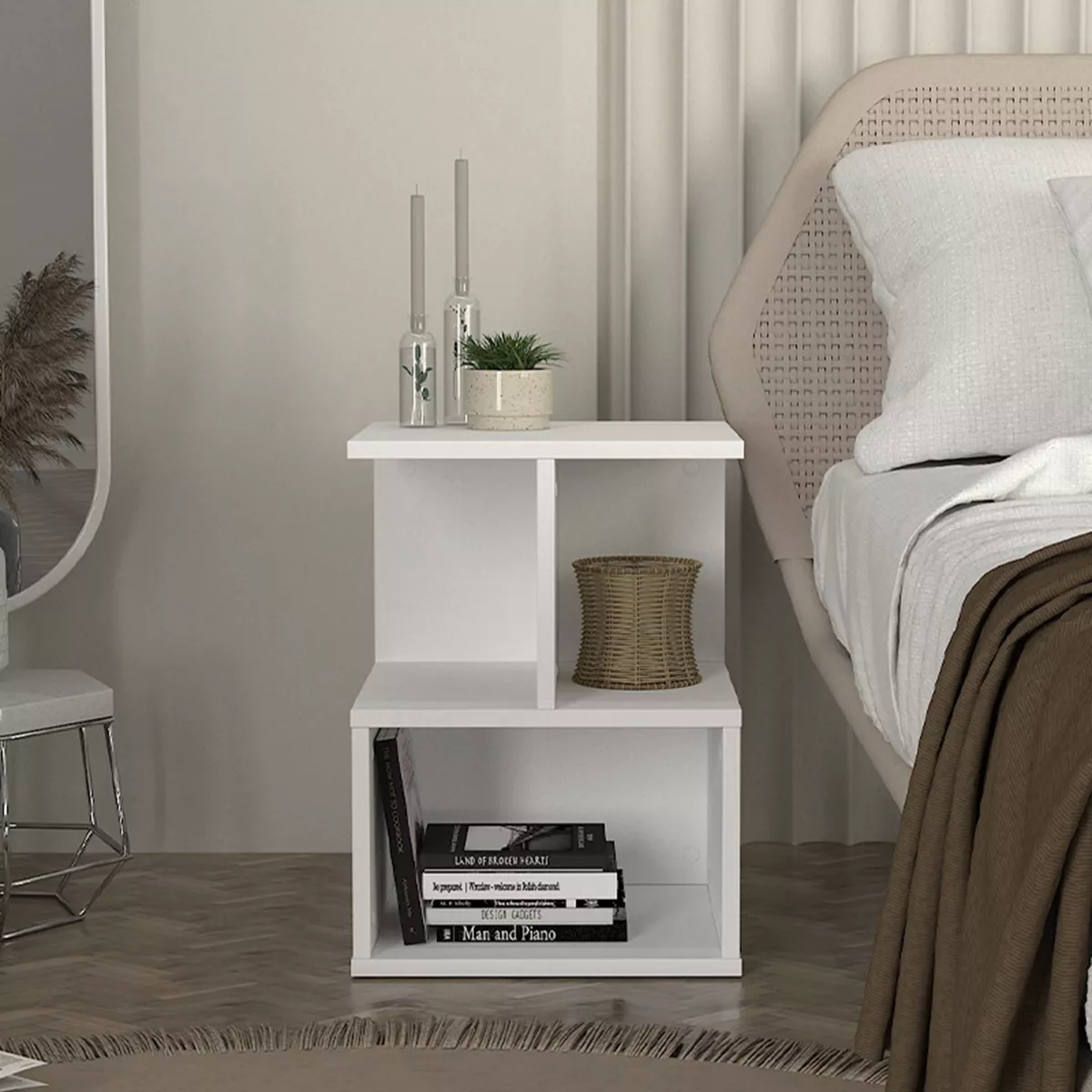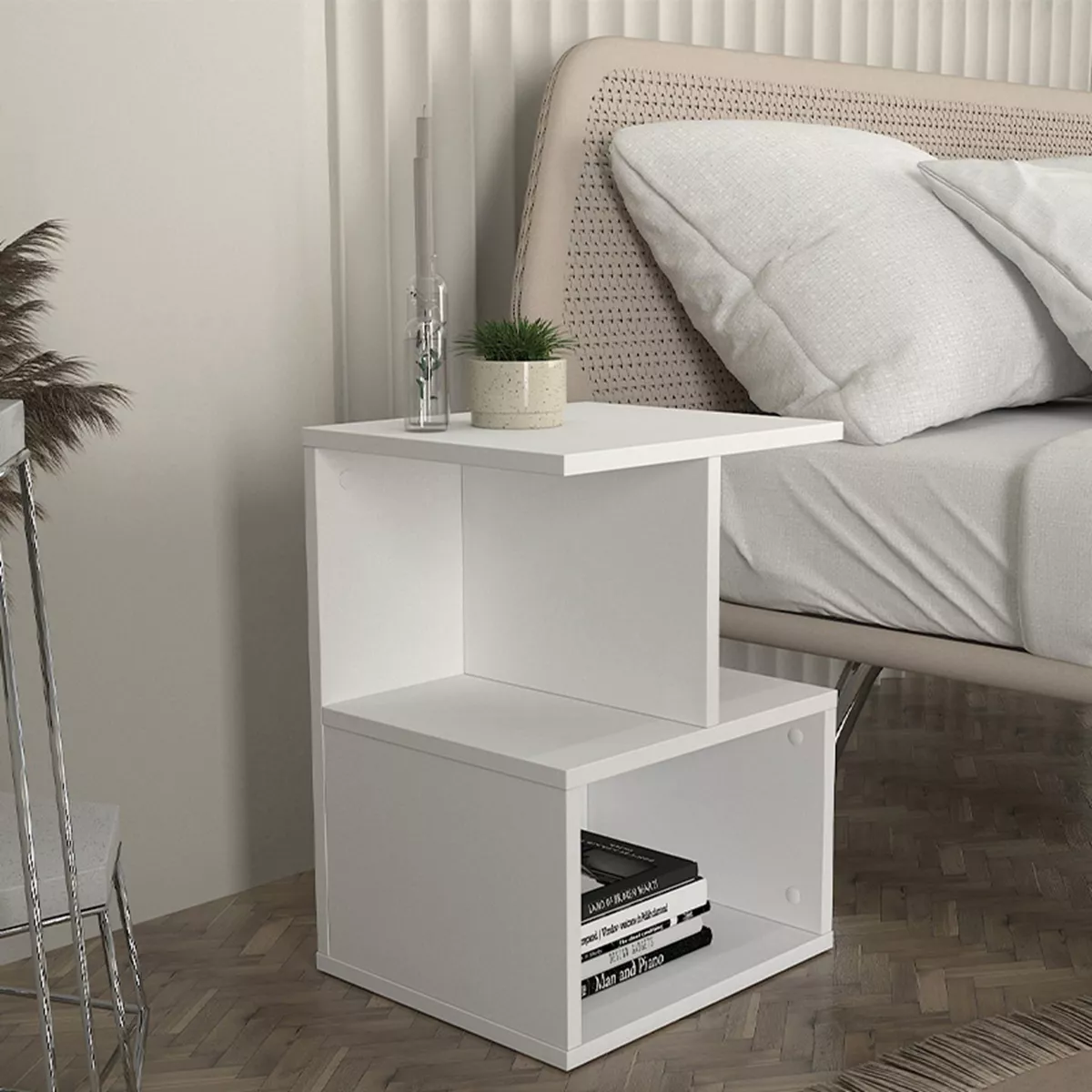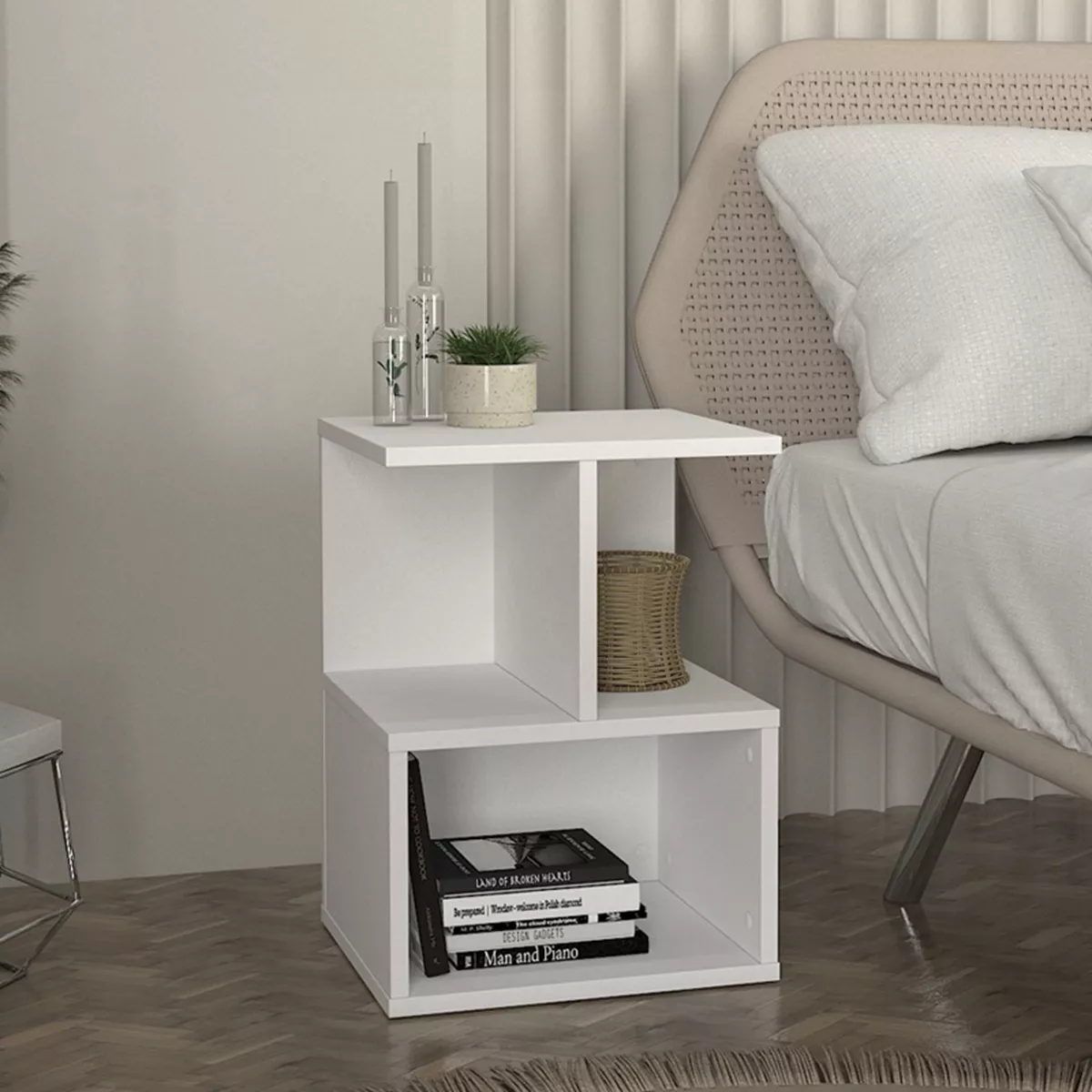 Κομοδίνο - Τραπεζάκι βοηθητικό Entiero Megapap χρώμα λευκό 39,8x35x54,6εκ.