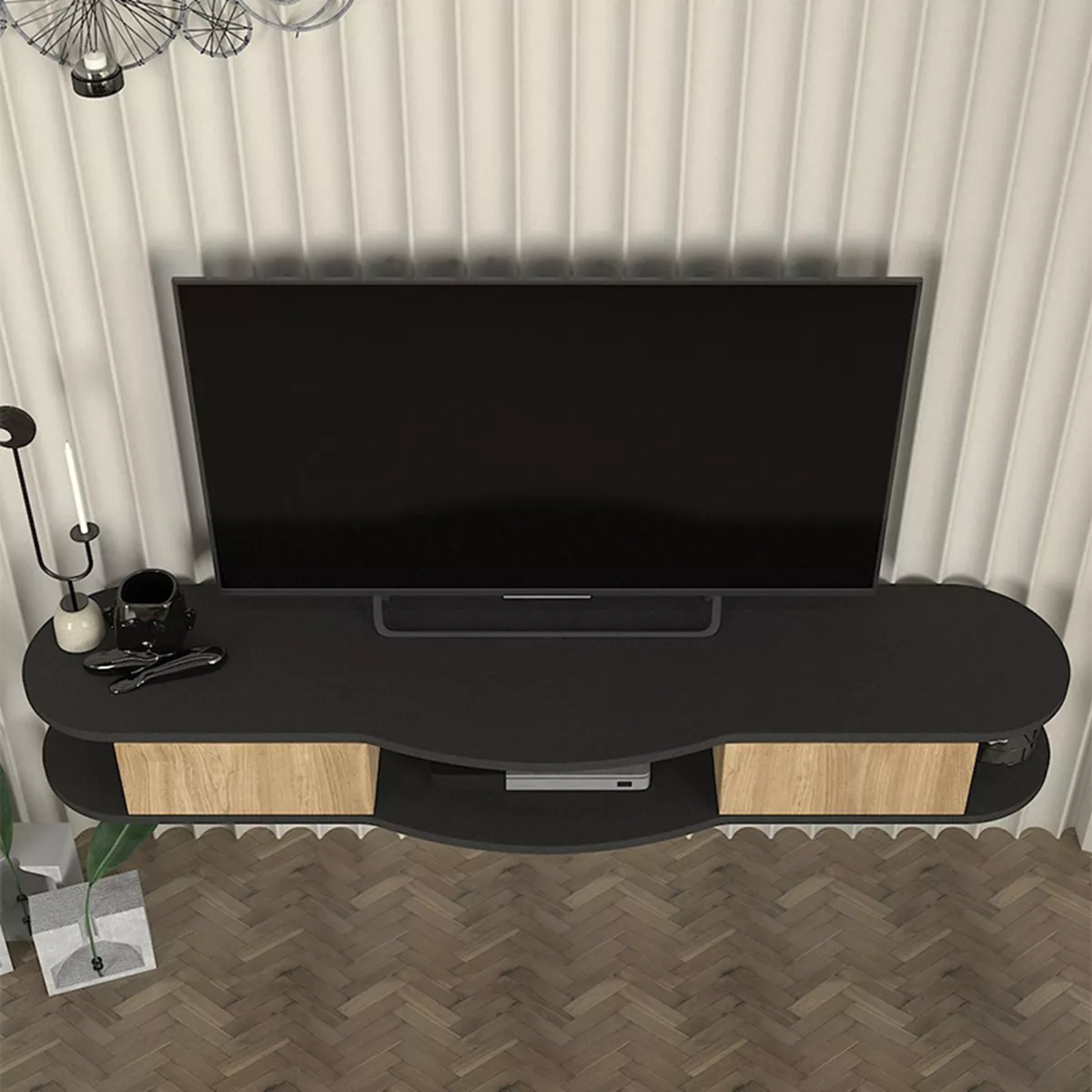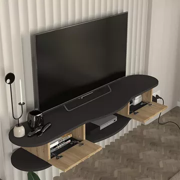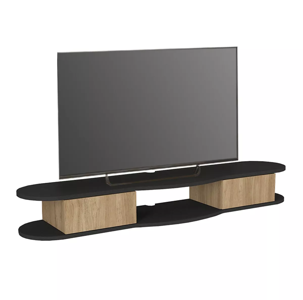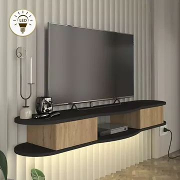 Έπιπλο τηλεόρασης επιτοίχιο Perk Megapap με LED χρώμα ανθρακί - sepet oak 150x35x19,2εκ.