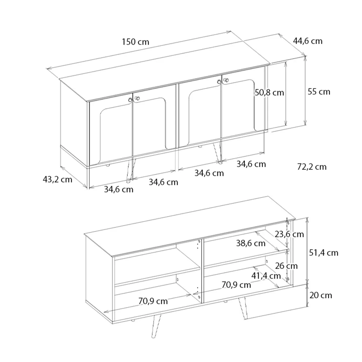 Μπουφές Sevilla Megapap χρώμα sandstone - travertine 150x44,6x72,2εκ.
